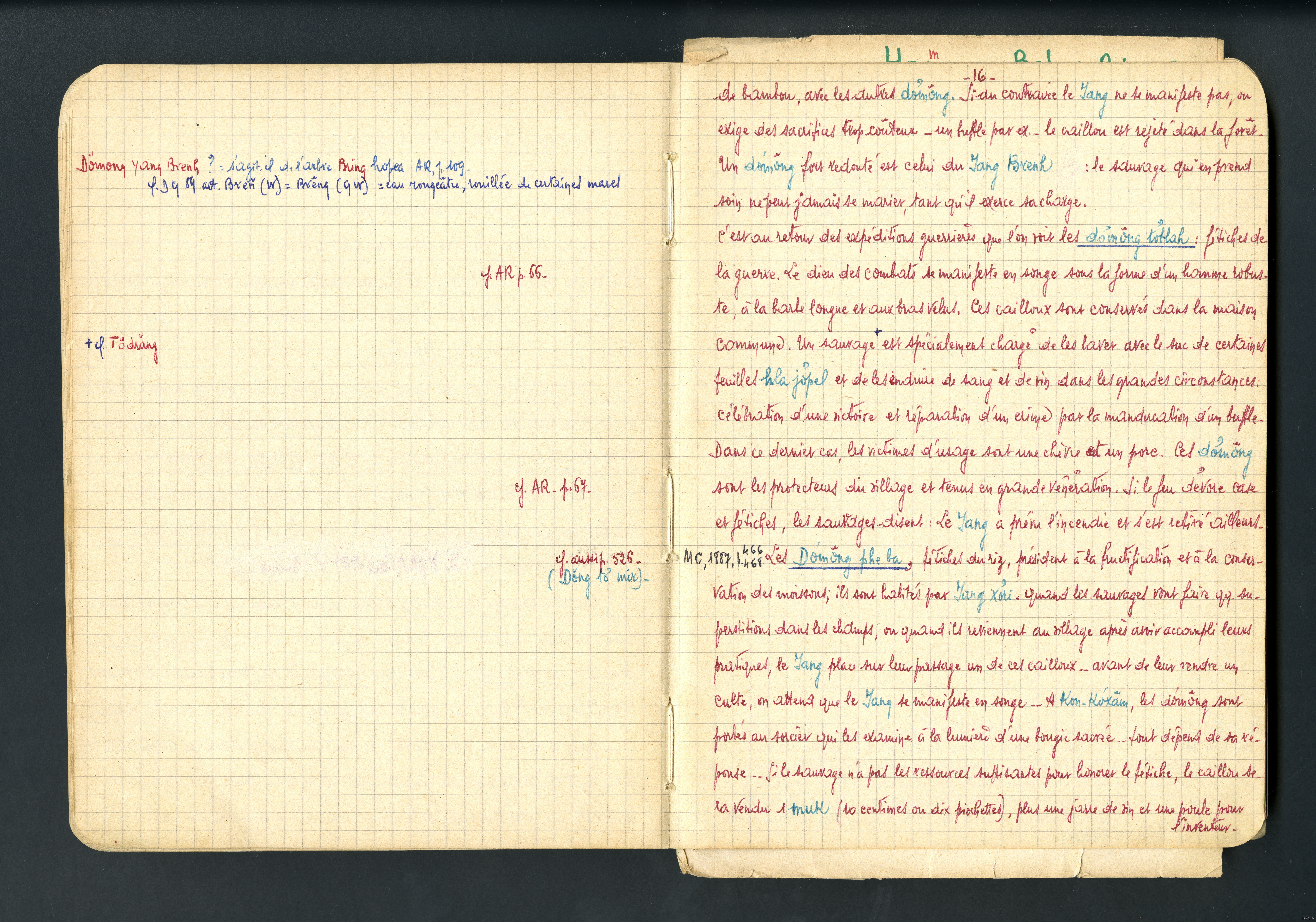 Cahier : moeurs et superstitions des Sauvages Bahnars