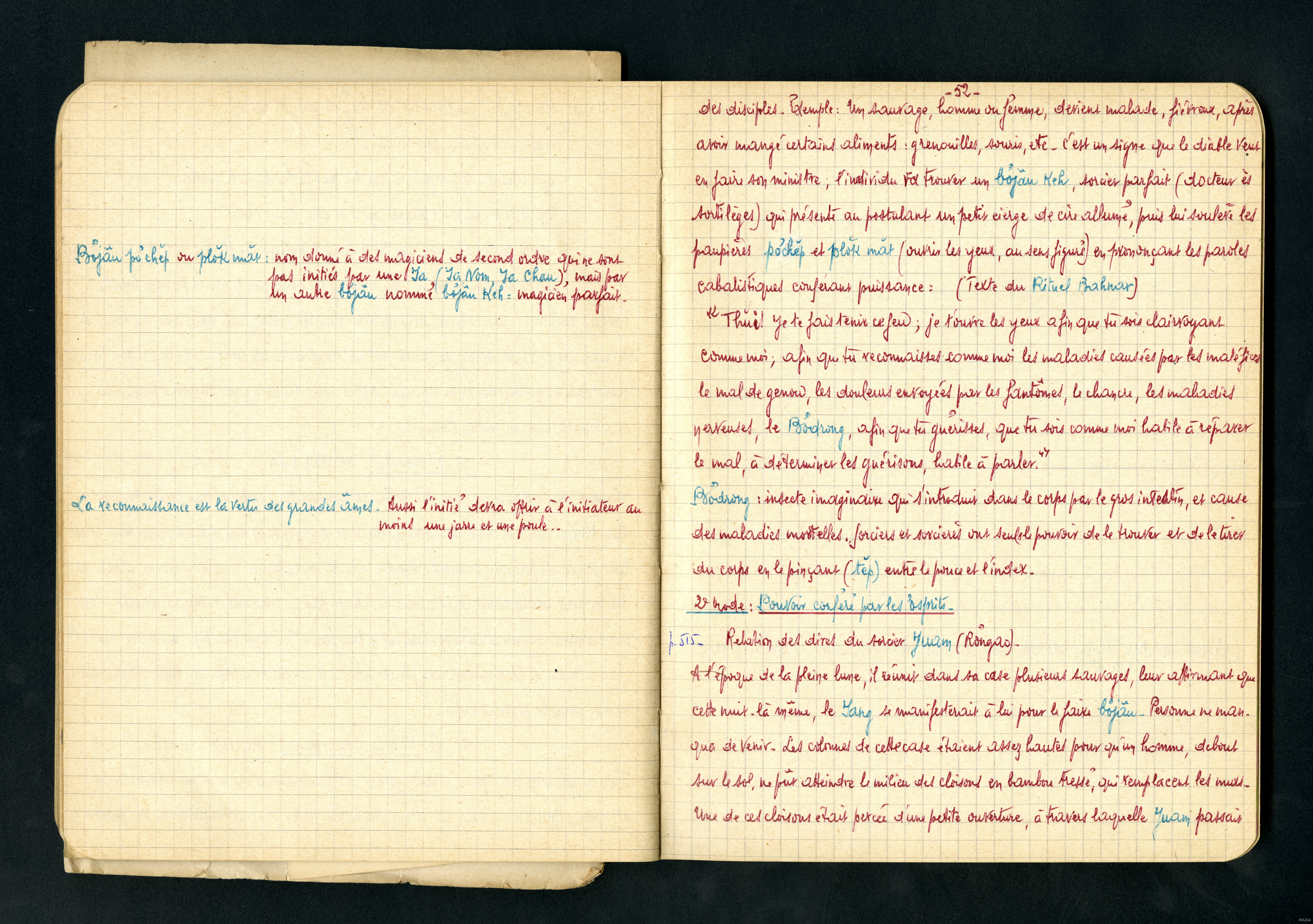 Cahier : moeurs et superstitions des Sauvages Bahnars