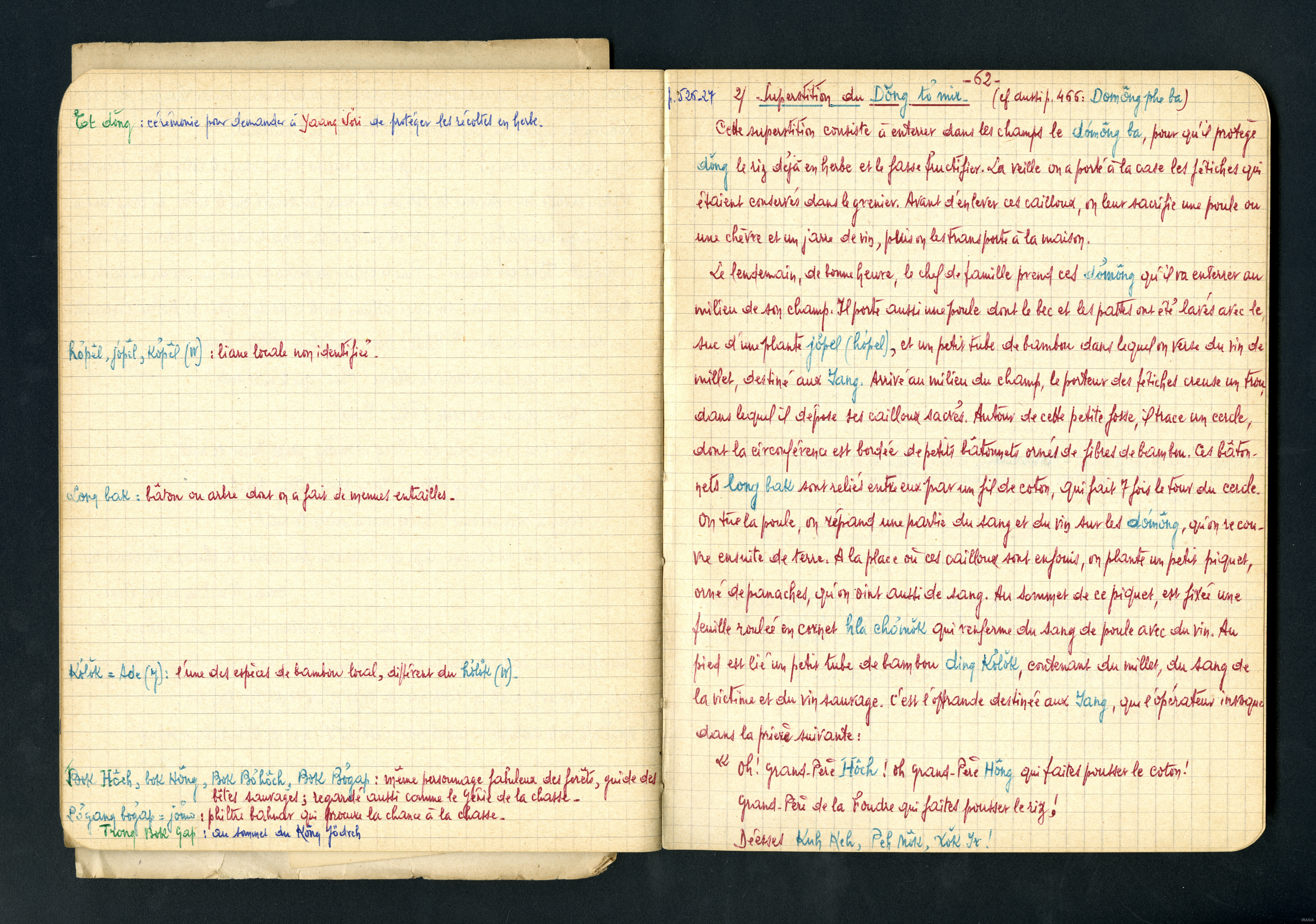 Cahier : moeurs et superstitions des Sauvages Bahnars