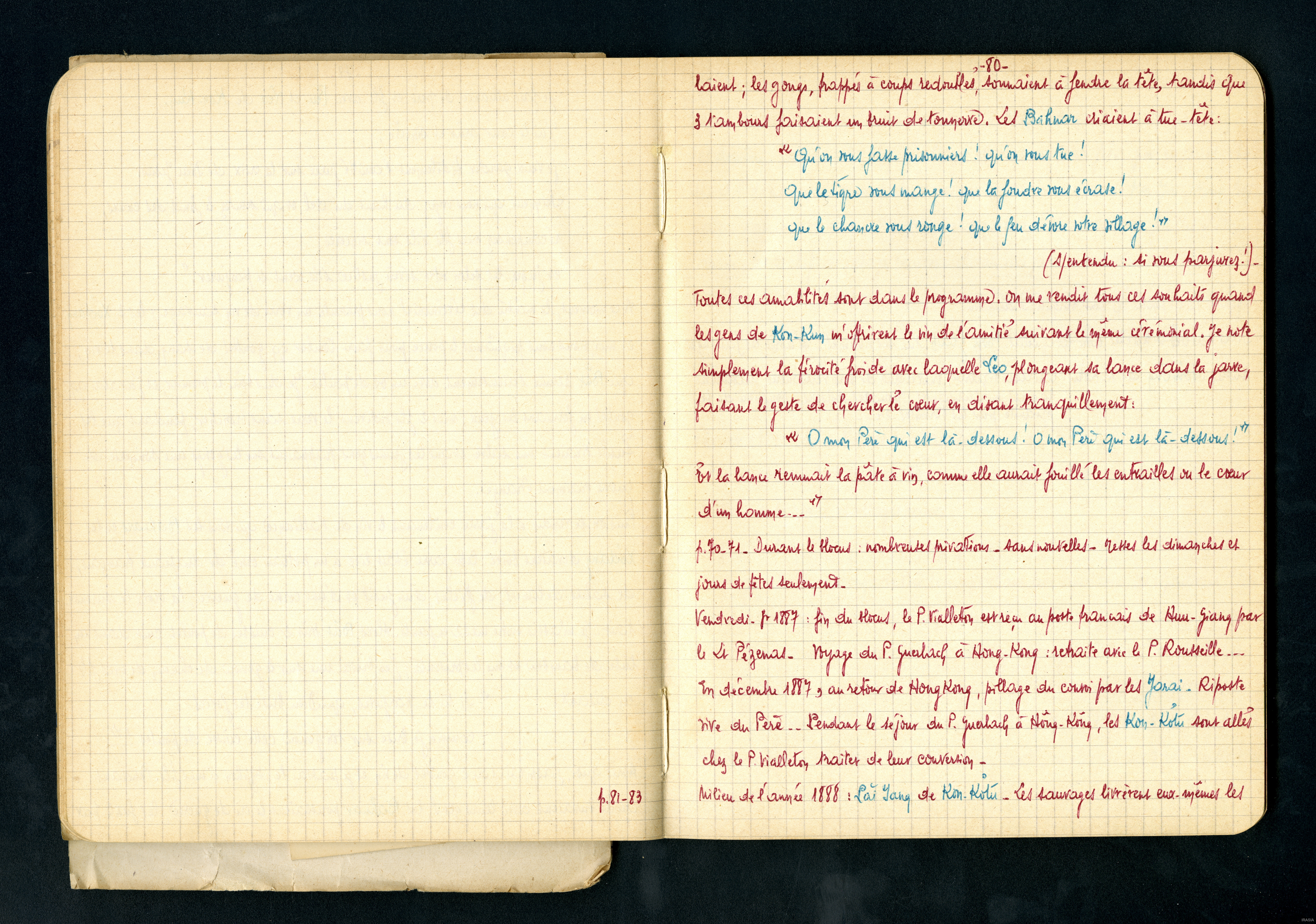 Quote this document Guerlach, Jean-Baptiste 1887 [accessed: 2026/2/5]. "Cahier : moeurs et superstitions des Sauvages Bahnars" (Object Id: 172291). In Cahier : moeurs et superstitions des Sauvages Bahnars. ODSAS: https://www.odsas.net/object/172291.