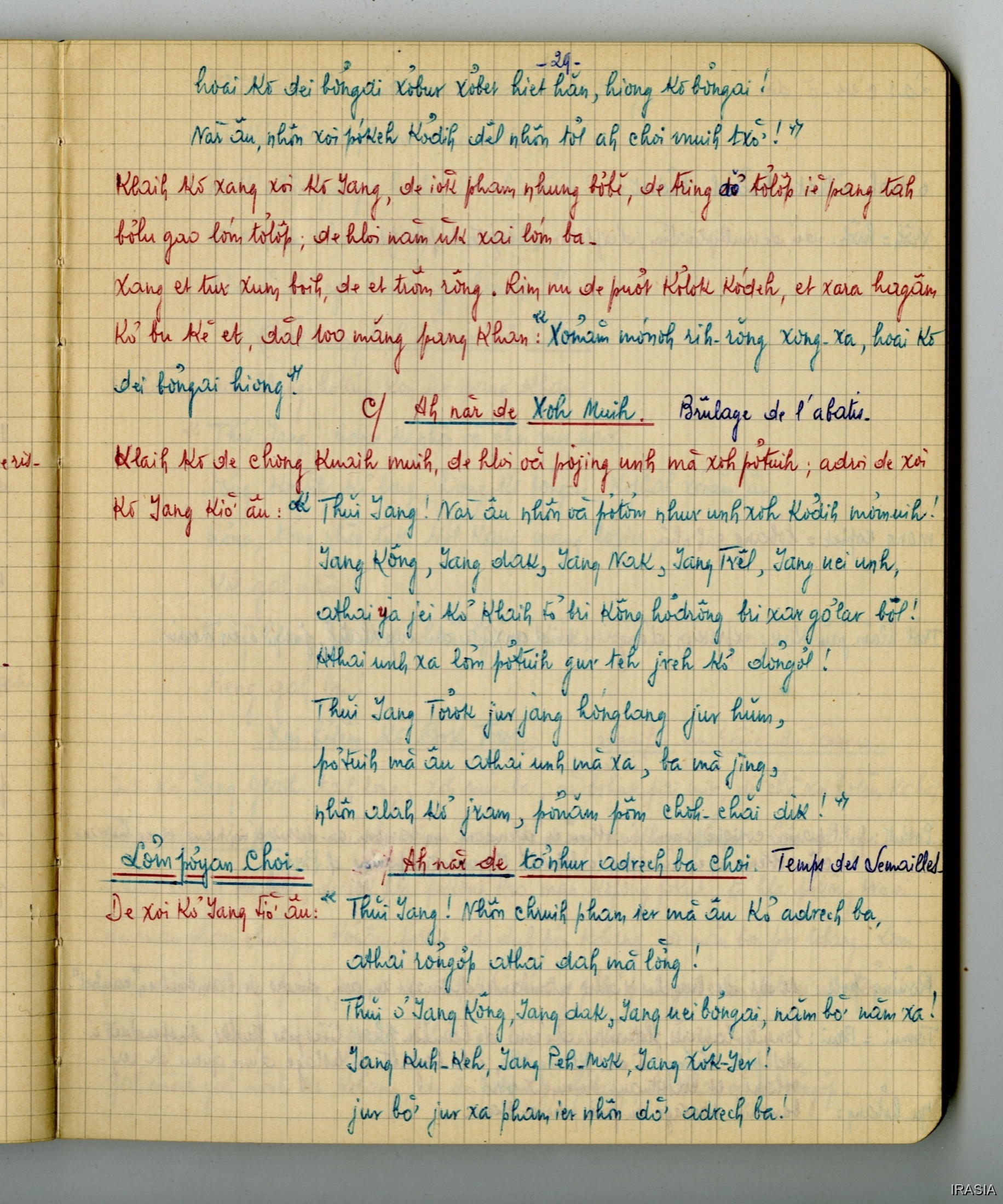 Fonds Léger : Thèse, Cahiers, Manuels, Missions...Cahier : Rites et coutumes Jolong172373<< >>