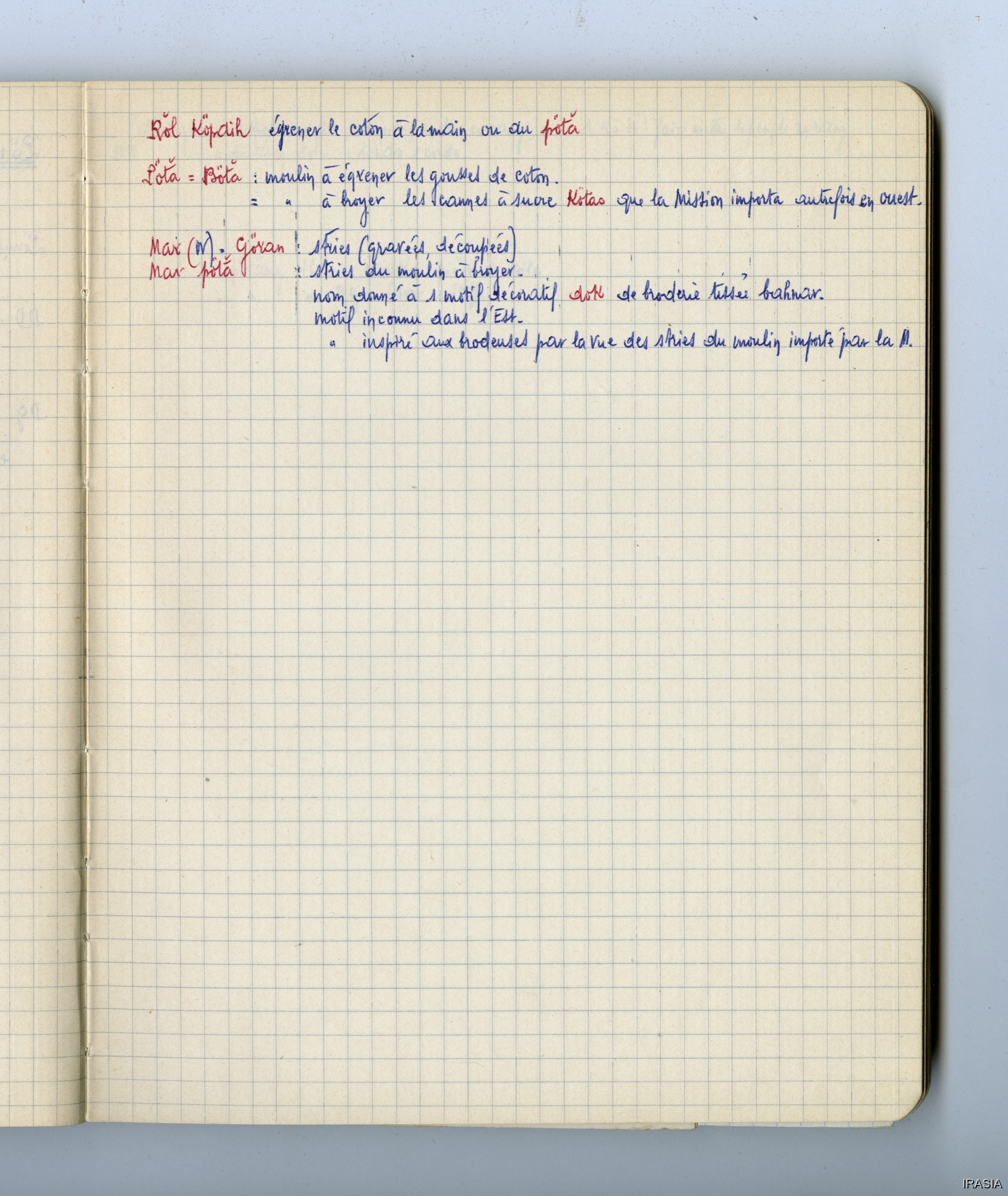 Fonds Léger : Thèse, Cahiers, Manuels, Missions...Cahier : Tissage172471<< >>