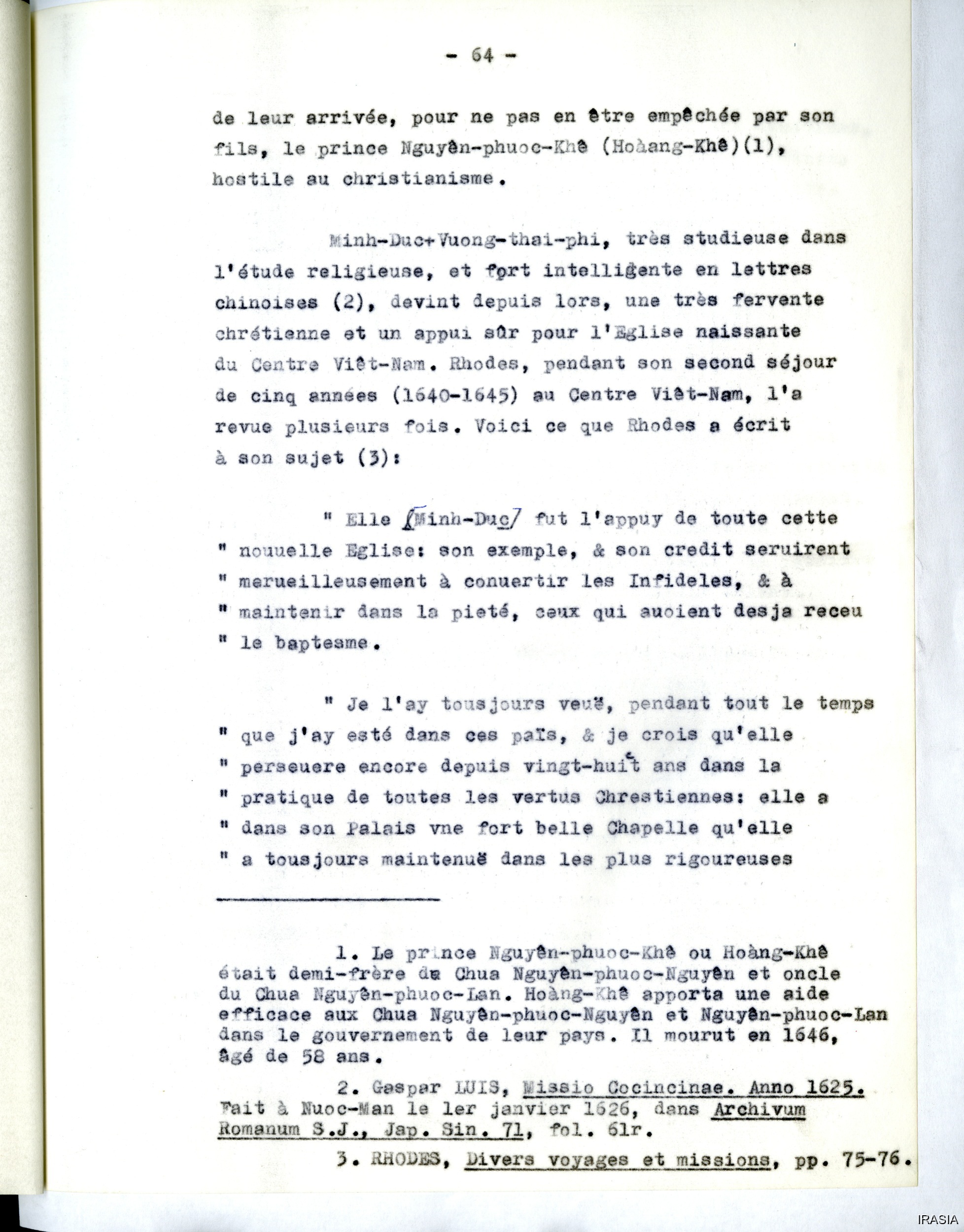 Quote this document Léger, Daniel 1969: 1624-1630, 1640-1645 [accessed: 2026/2/5]. "Divers : La mission au Viêt-Nam d'Alexandre de Rhodes" (Object Id: 172699). In Divers : La mission au Viêt-Nam d'Alexandre de Rhodes. ODSAS: https://www.odsas.net/object/172699.