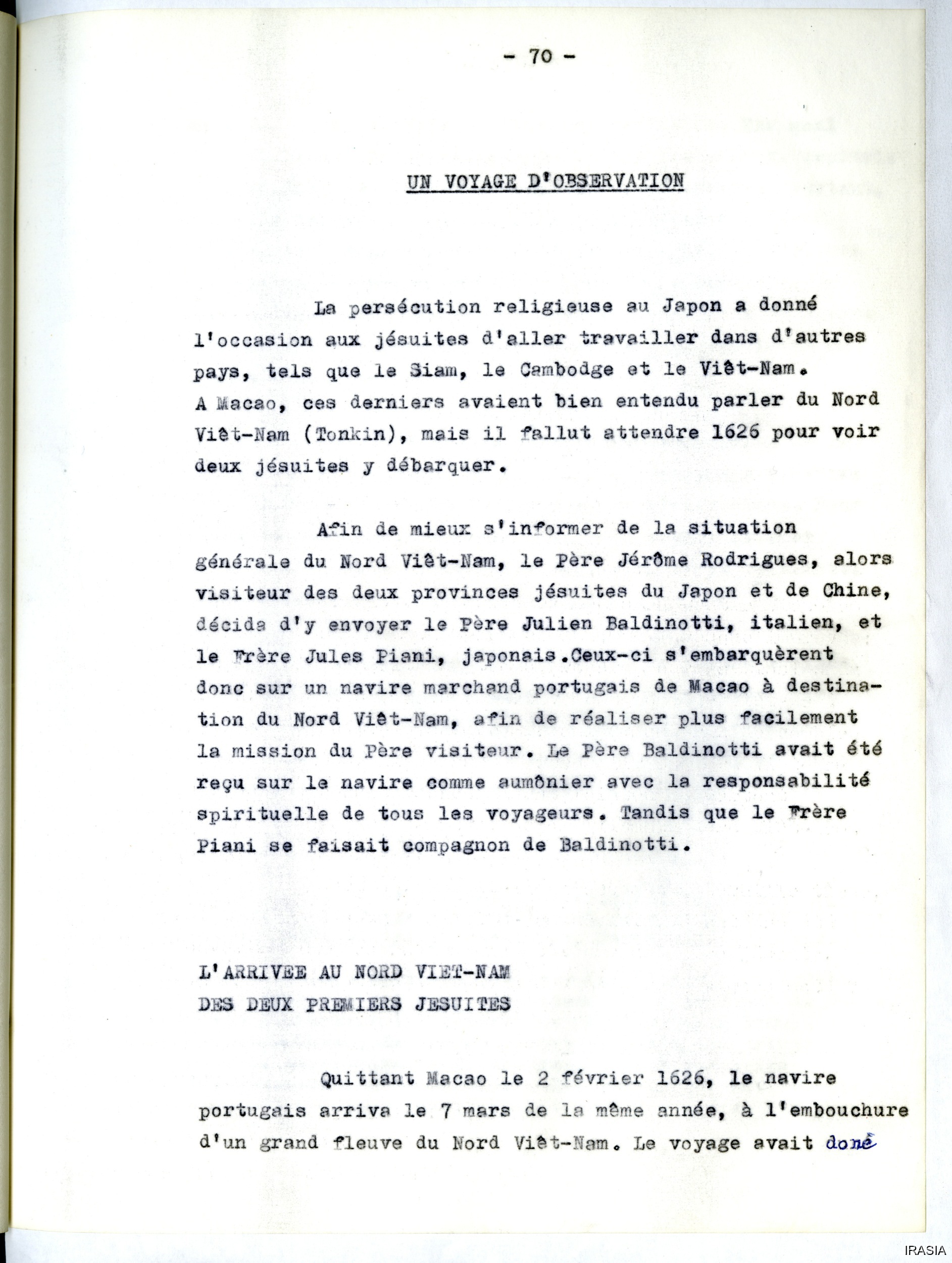 Fonds Léger : Thèse, Cahiers, Manuels, Missions...Divers : La mission au Viêt-Nam d'Alexandre de R...172705<< >>