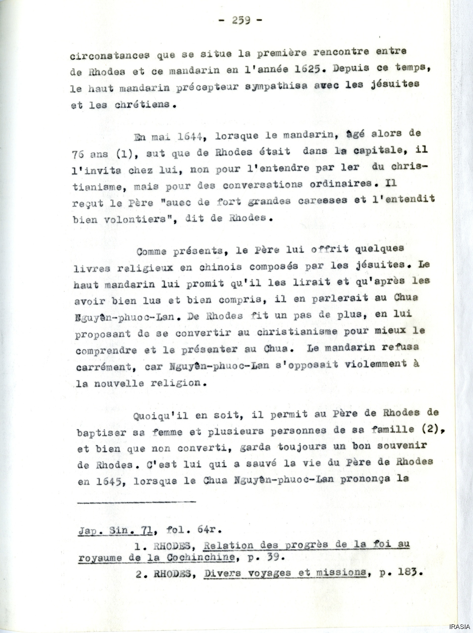 Quote this document Léger, Daniel 1969: 1624-1630, 1640-1645 [accessed: 2026/2/5]. "Divers : La mission au Viêt-Nam d'Alexandre de Rhodes" (Object Id: 172896). In Divers : La mission au Viêt-Nam d'Alexandre de Rhodes. ODSAS: https://www.odsas.net/object/172896.