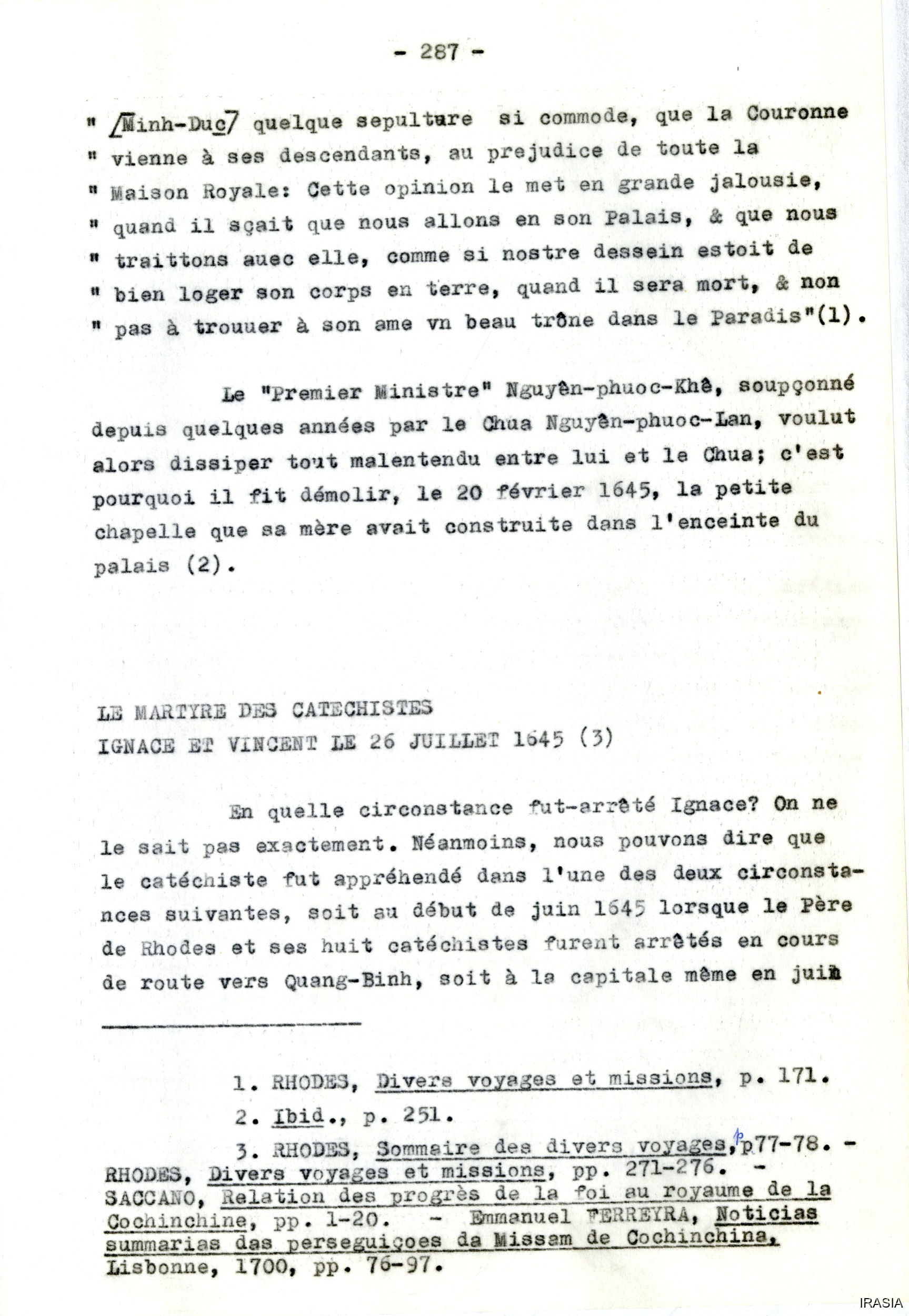 Quote this document Léger, Daniel 1969: 1624-1630, 1640-1645 [accessed: 2026/2/5]. "Divers : La mission au Viêt-Nam d'Alexandre de Rhodes" (Object Id: 172925). In Divers : La mission au Viêt-Nam d'Alexandre de Rhodes. ODSAS: https://www.odsas.net/object/172925.