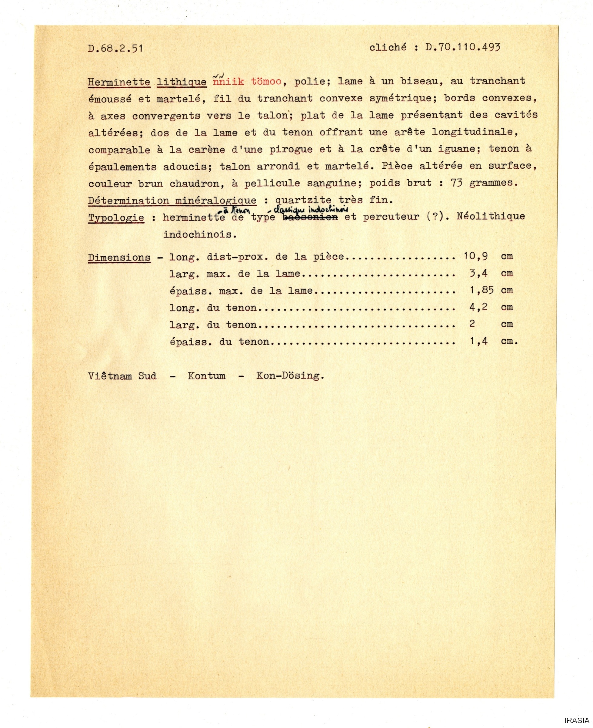 Quote this document Léger, Daniel [accessed: 2026/2/5]. "Outils" (Object Id: 173441). In Outils. ODSAS: https://www.odsas.net/object/173441.