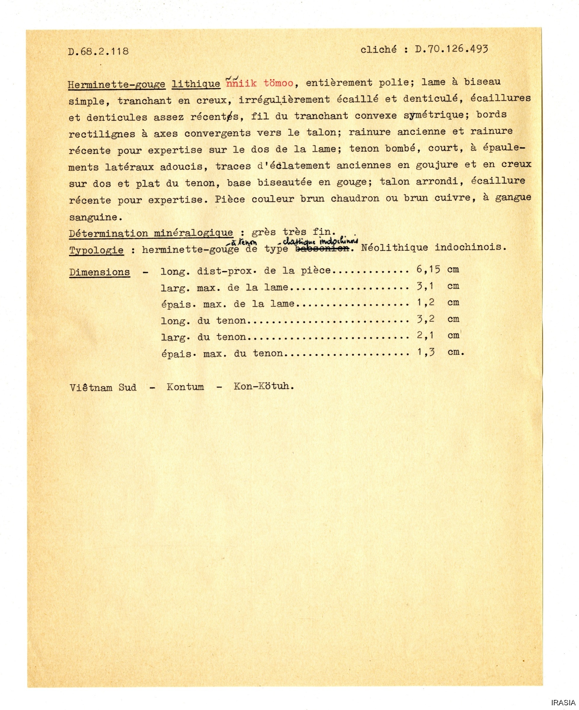 Quote this document Léger, Daniel [accessed: 2026/2/5]. "Outils" (Object Id: 173638). In Outils. ODSAS: https://www.odsas.net/object/173638.