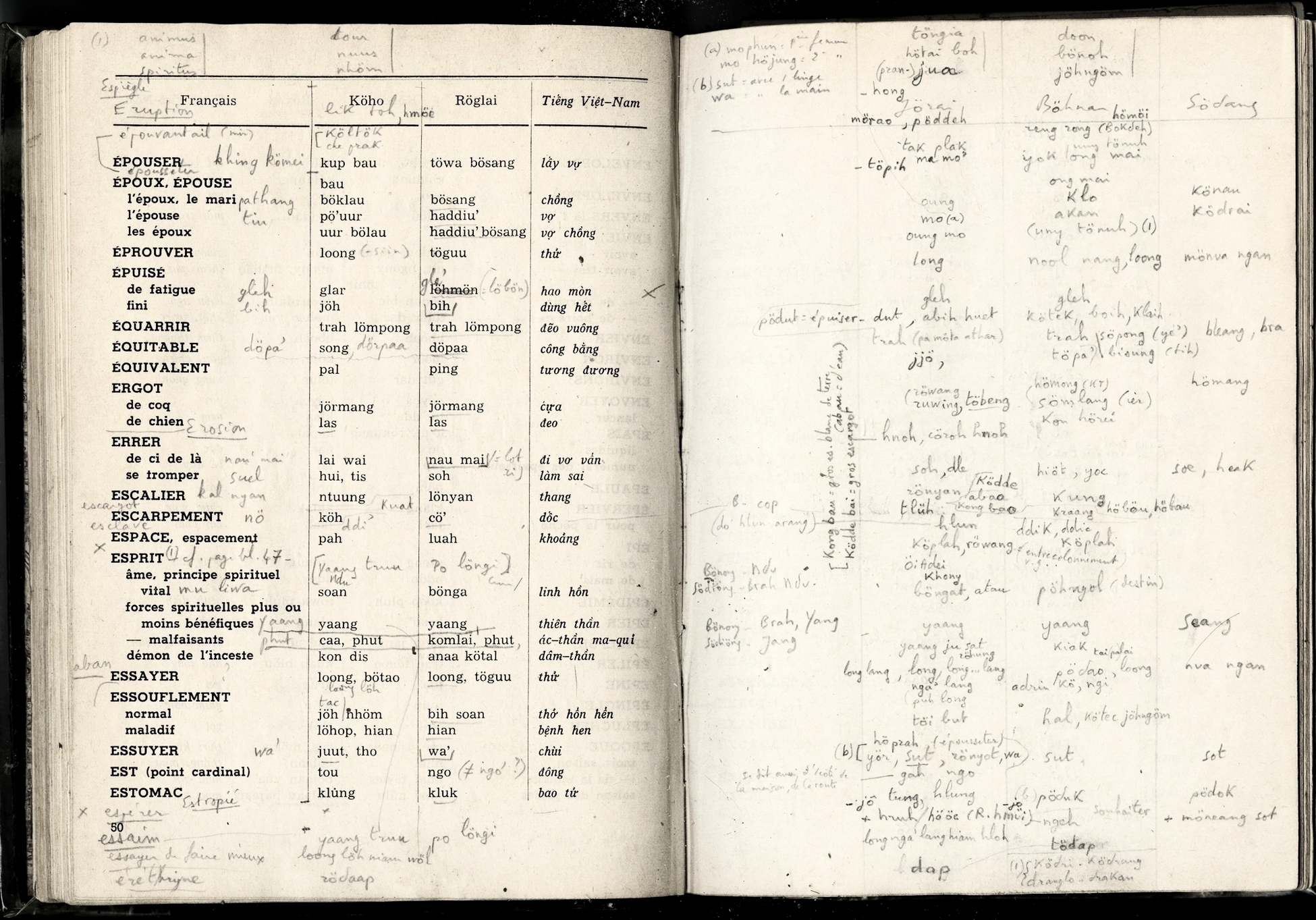 Lexique Polyglotte Viêtnamien, Köho, Röglai, Français