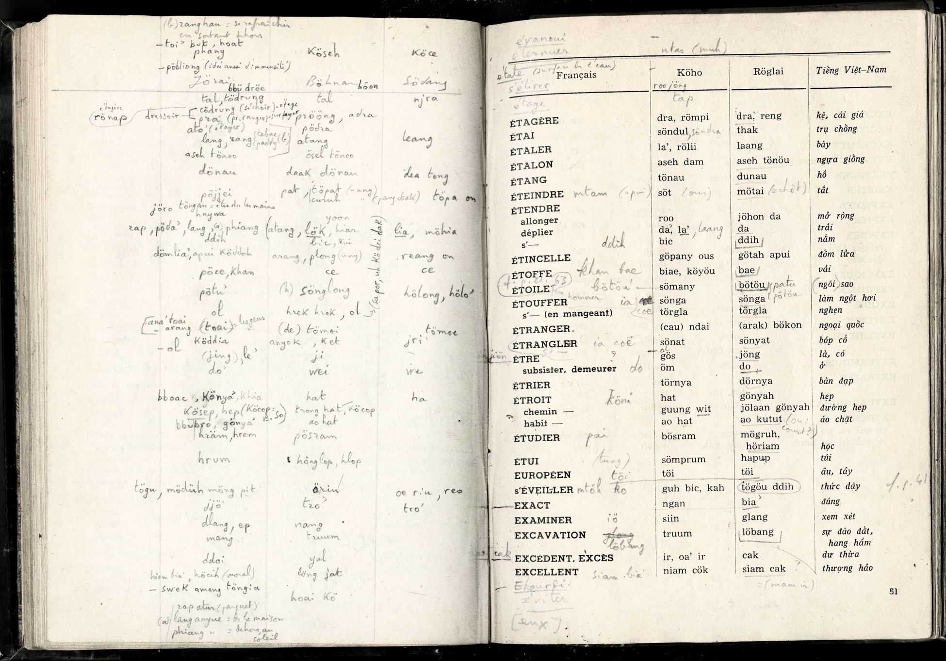 Lexique Polyglotte Viêtnamien, Köho, Röglai, Français