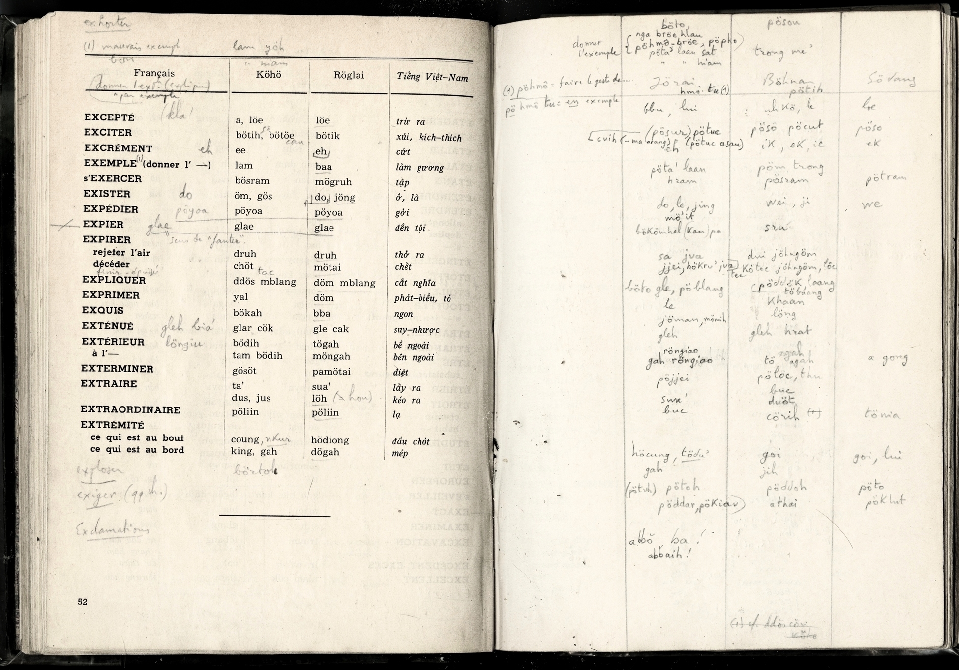 Lexique Polyglotte Viêtnamien, Köho, Röglai, Français