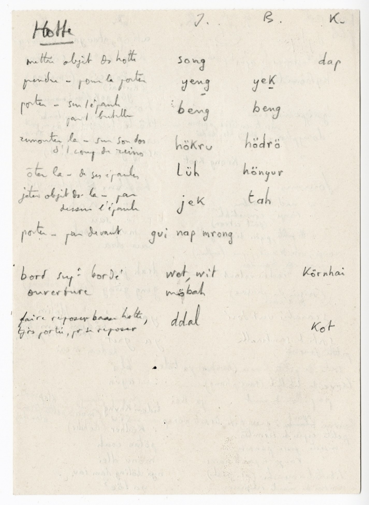 Quote this document Bochet, Gilles; Dournes, Jacques 1953 [accessed: 2026/2/5]. "Lexique Polyglotte Viêtnamien, Köho, Röglai, Français" (Object Id: 17417). In Lexique Polyglotte Viêtnamien, Köho, Röglai, Français. ODSAS: https://www.odsas.net/object/17417.