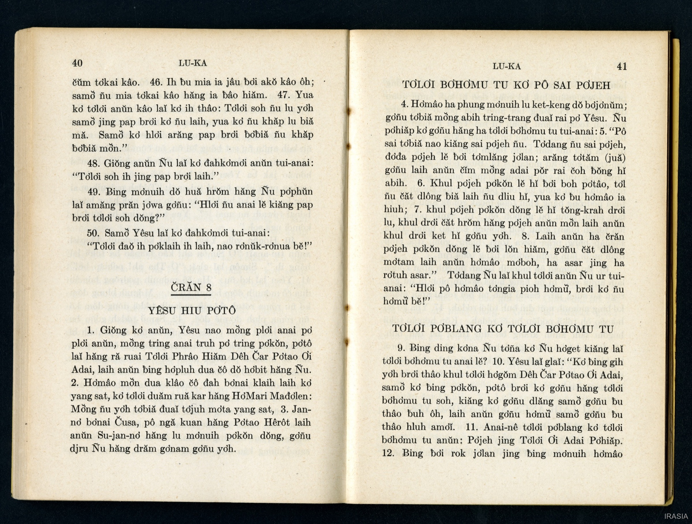 Quote this document Dournes, Jacques 1946-1955 [accessed: 2026/2/6]. "Evangiles : Tơlơi phrâo hiăm" (Object Id: 174388). In Evangiles : Tơlơi phrâo hiăm. ODSAS: https://www.odsas.net/object/174388.