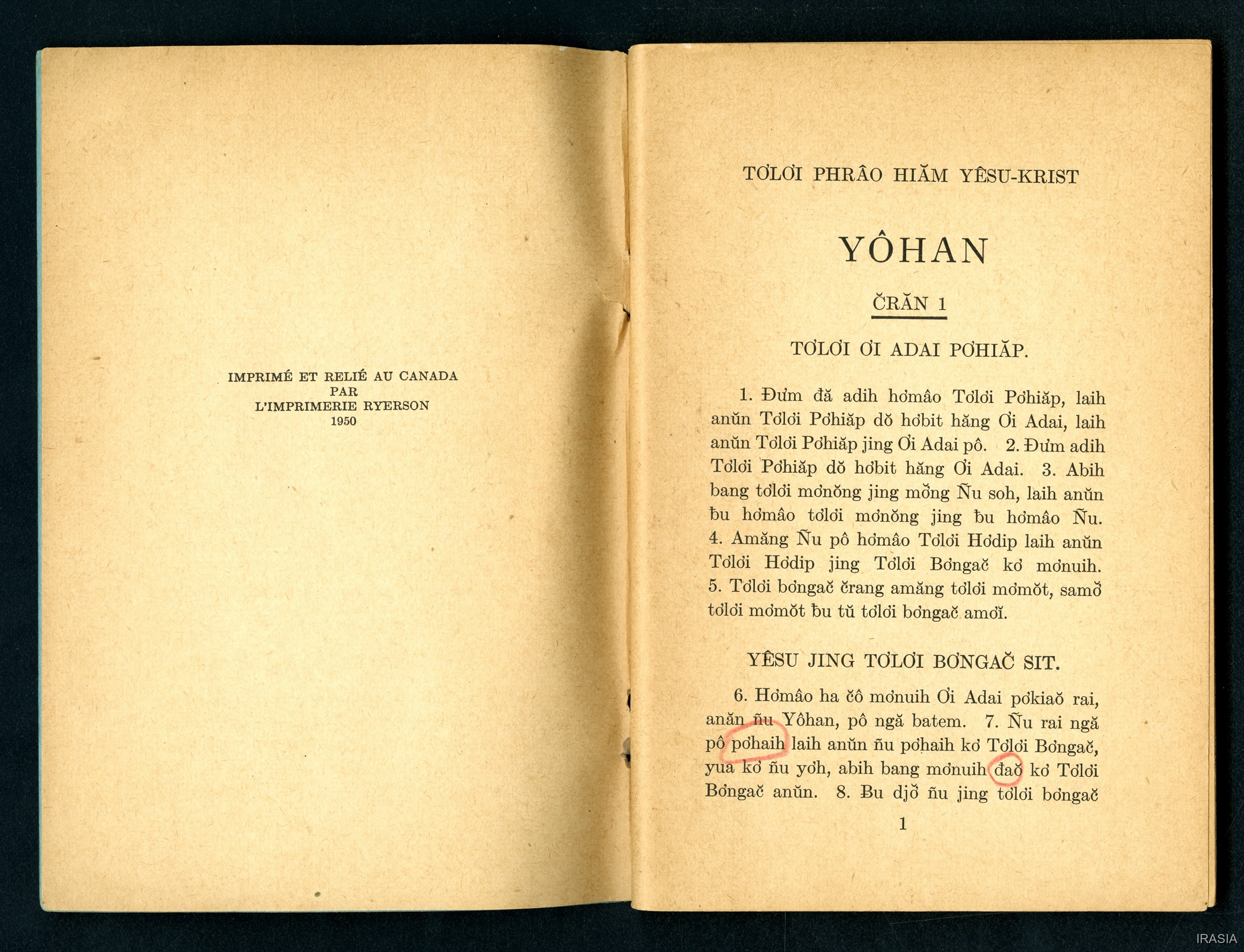 Dournes, Jacques 1946-1955 [accessed: 2026/2/5]. "Evangiles : Tơlơi phrâo hiăm yêsu-krist YÔHAN" (Object Id: 174500). In