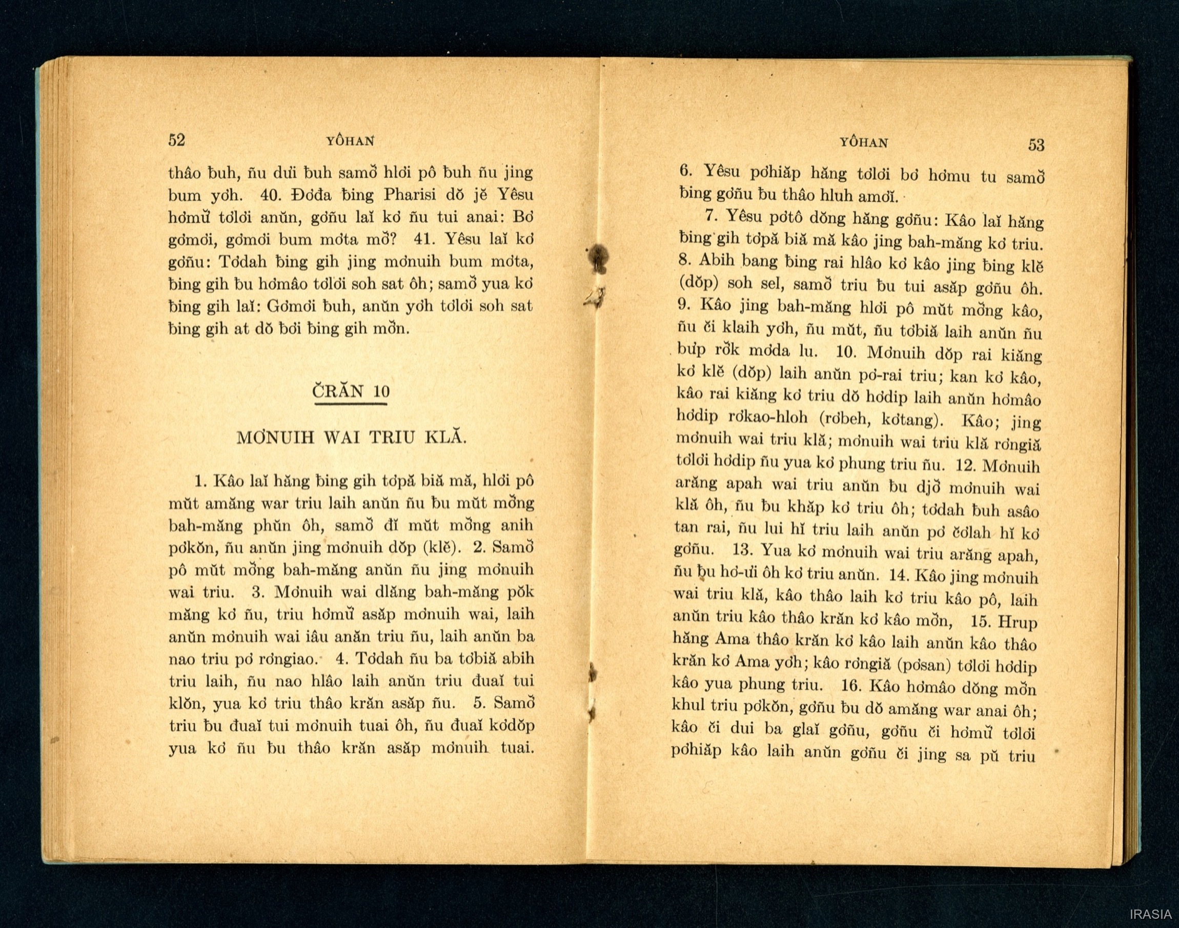 Quote this document Dournes, Jacques 1946-1955 [accessed: 2026/2/5]. "Evangiles : Tơlơi phrâo hiăm yêsu-krist YÔHAN" (Object Id: 174526). In Evangiles : Tơlơi phrâo hiăm yêsu-krist YÔHAN. ODSAS: https://www.odsas.net/object/174526.