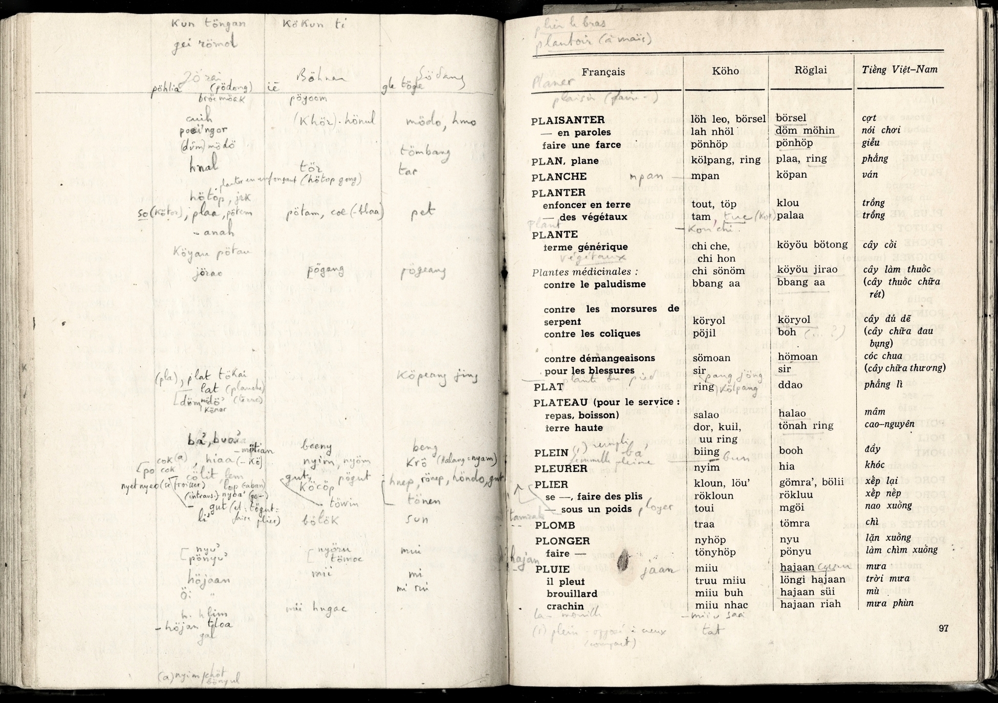 Lexique Polyglotte Viêtnamien, Köho, Röglai, Français