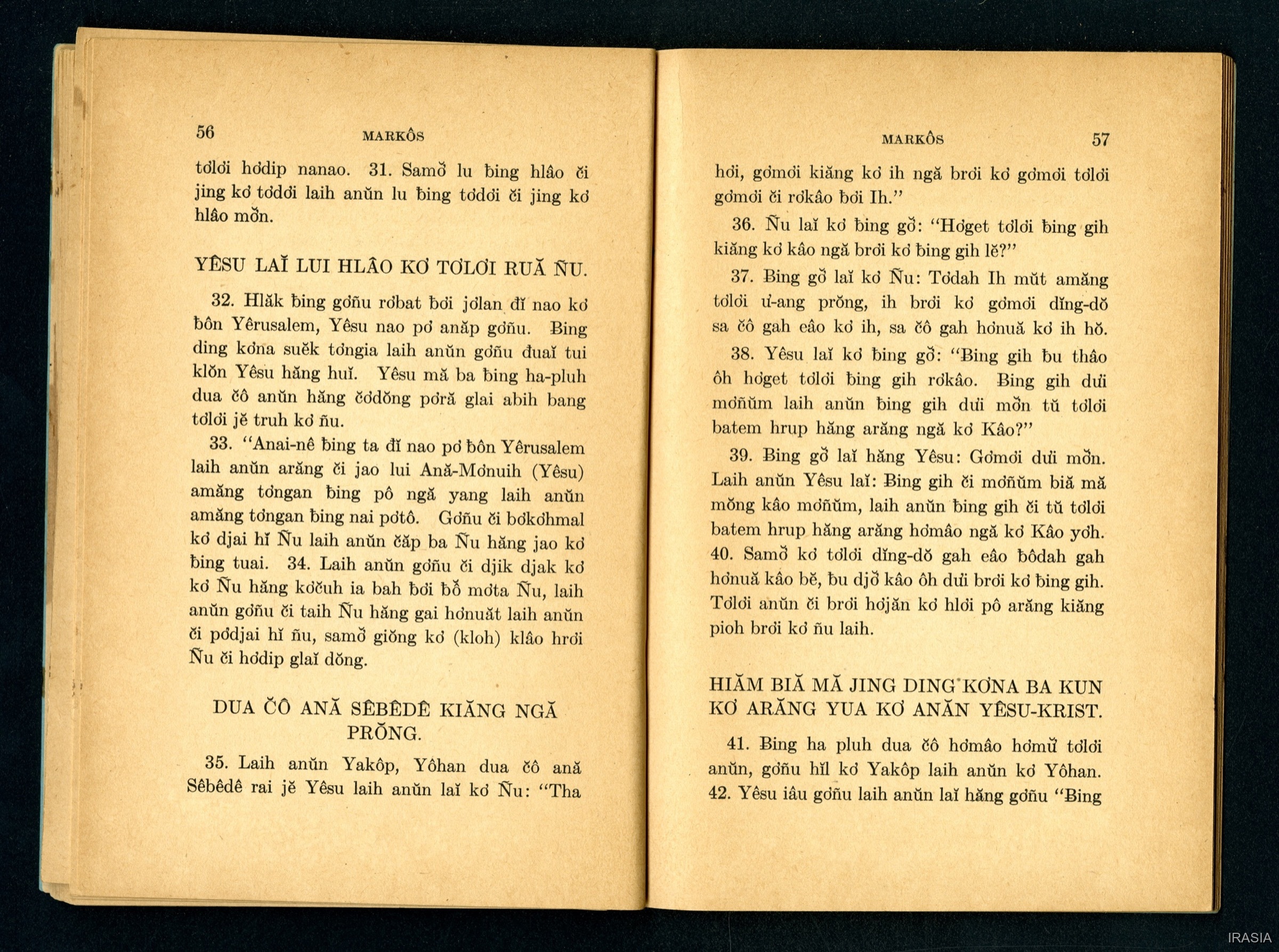 Quote this document Dournes, Jacques 1946-1955 [accessed: 2026/2/6]. "Evangiles : Tơlơi phrâo hiăm yêsu-krist MARKÔS" (Object Id: 174587). In Evangiles : Tơlơi phrâo hiăm yêsu-krist MARKÔS. ODSAS: https://www.odsas.net/object/174587.