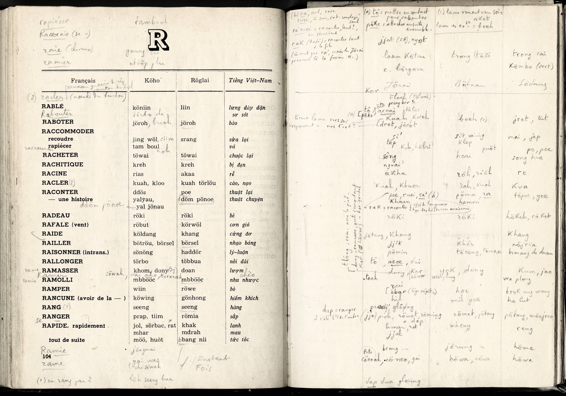 Lexique Polyglotte Viêtnamien, Köho, Röglai, Français