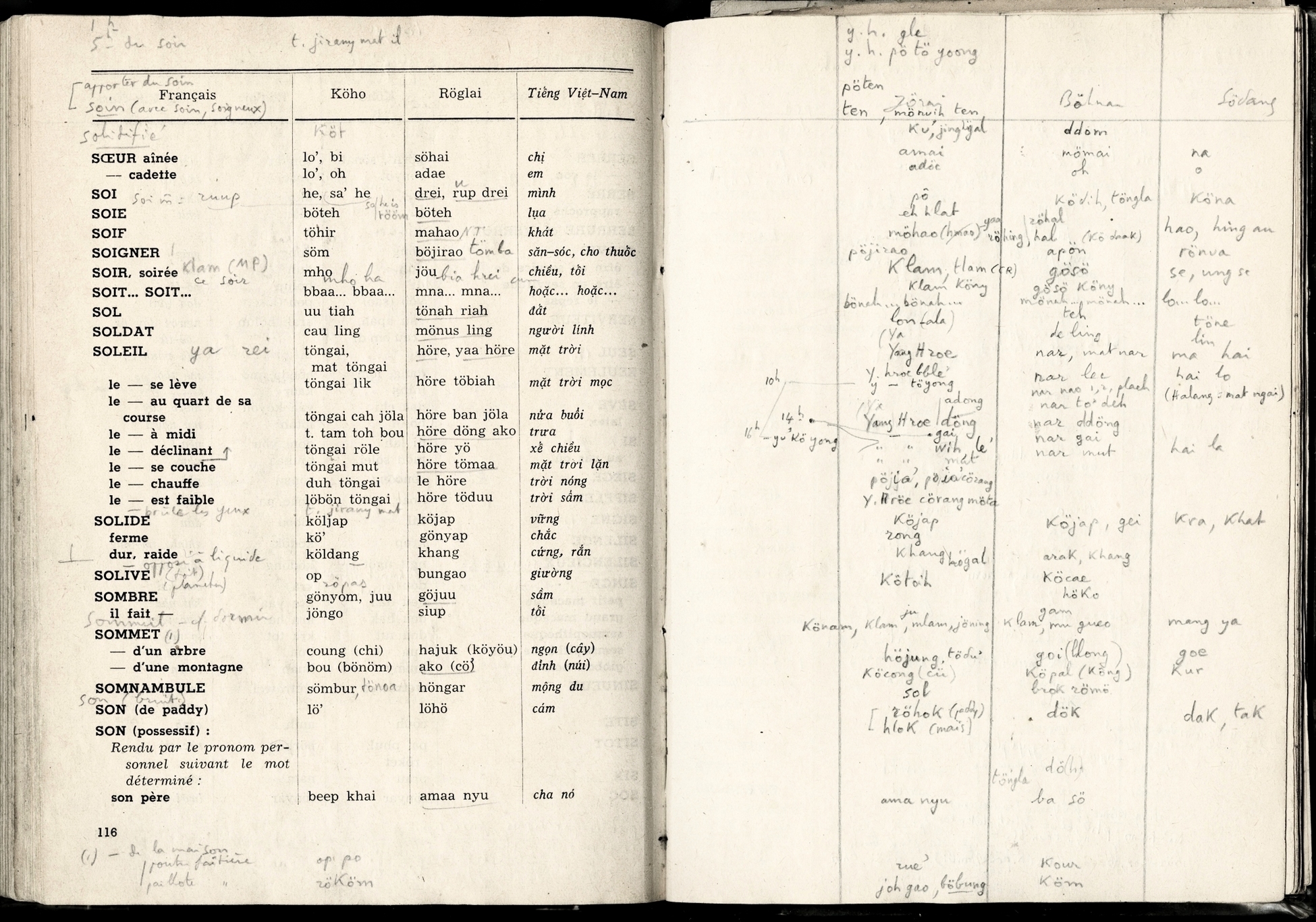 Lexique Polyglotte Viêtnamien, Köho, Röglai, Français