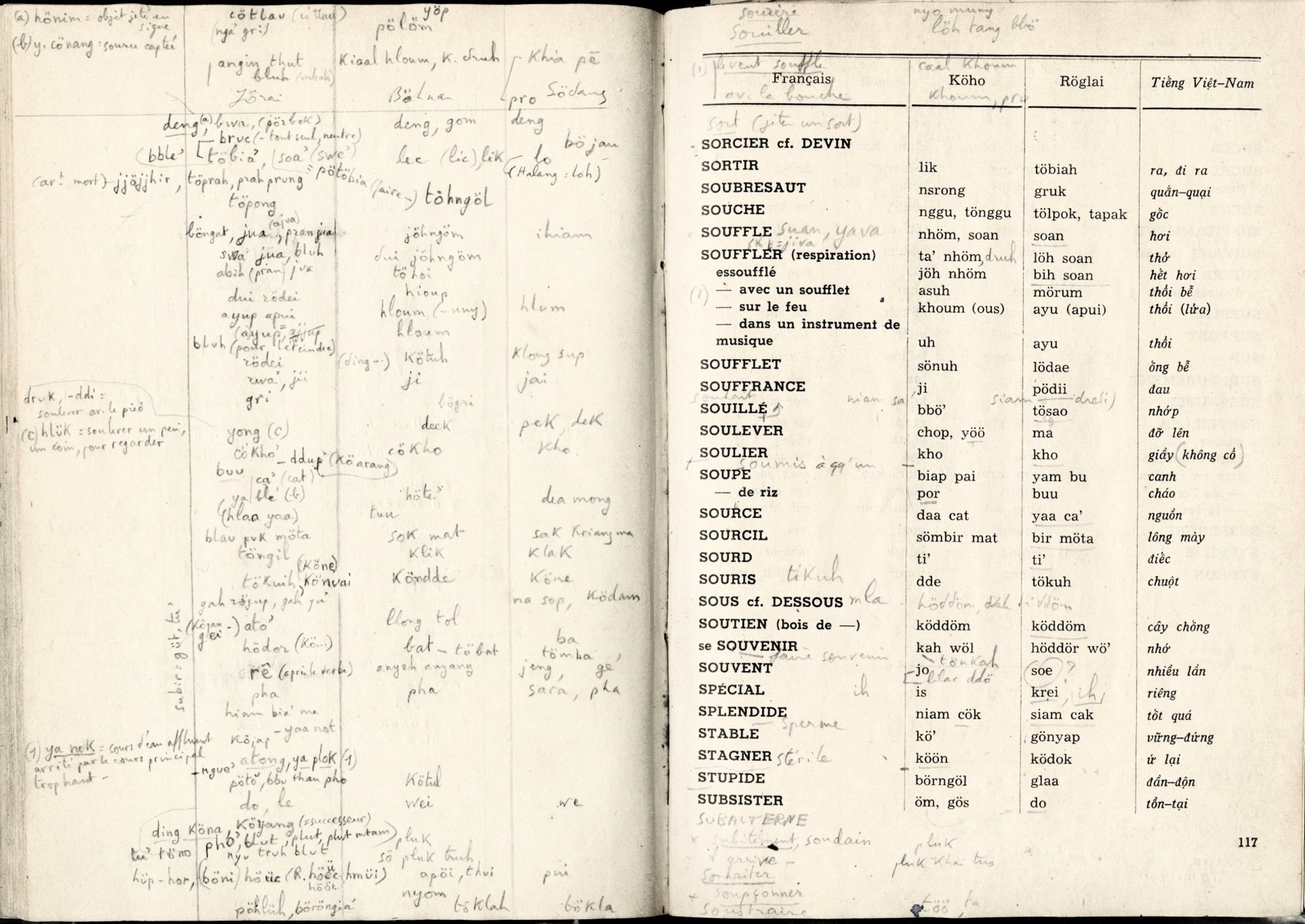 Lexique Polyglotte Viêtnamien, Köho, Röglai, Français [