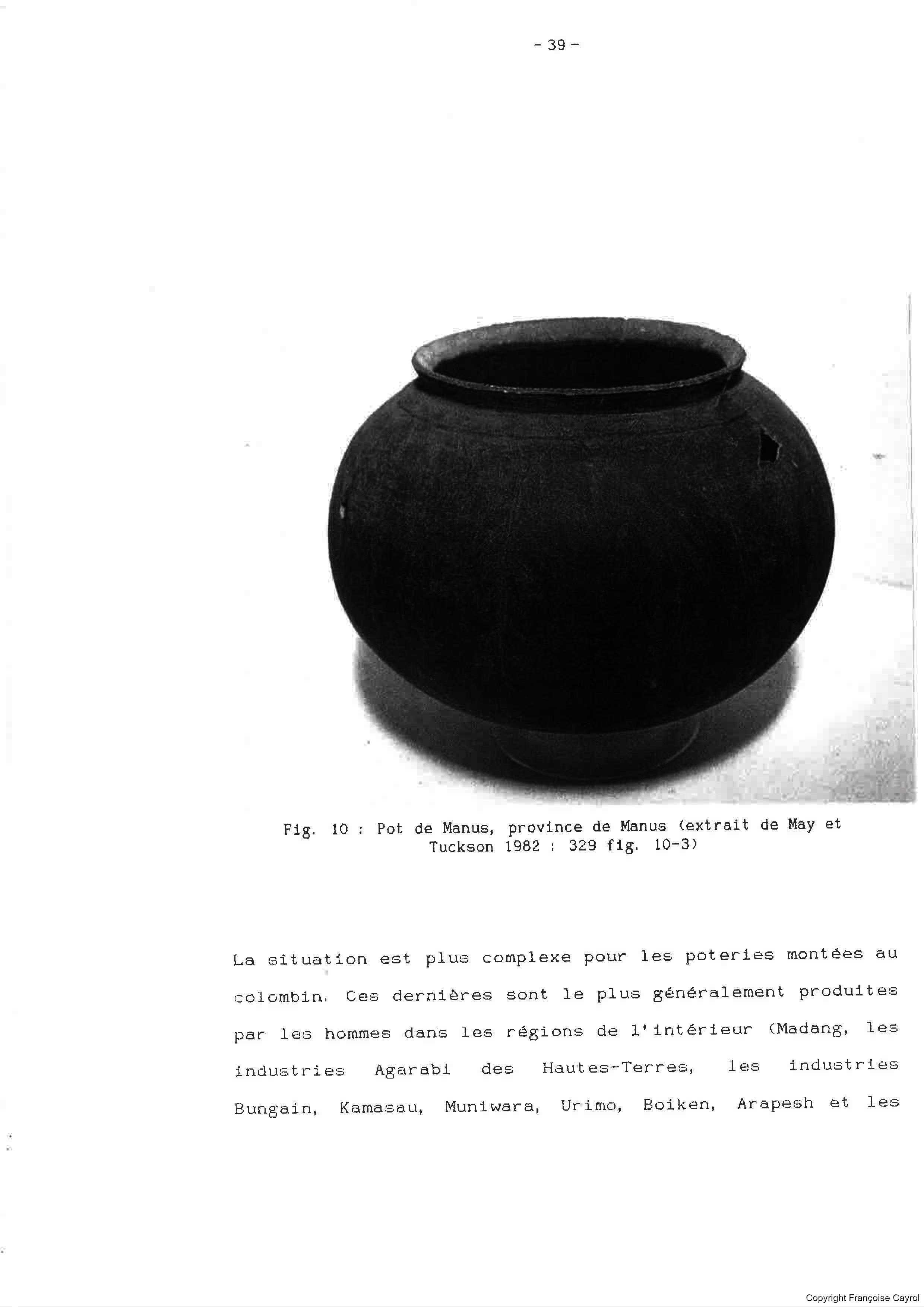 Françoise Cayrol. La céramique en Mélanésie du Sud, Fonction ou Statut. Volume 1 [Set(s) 1662]