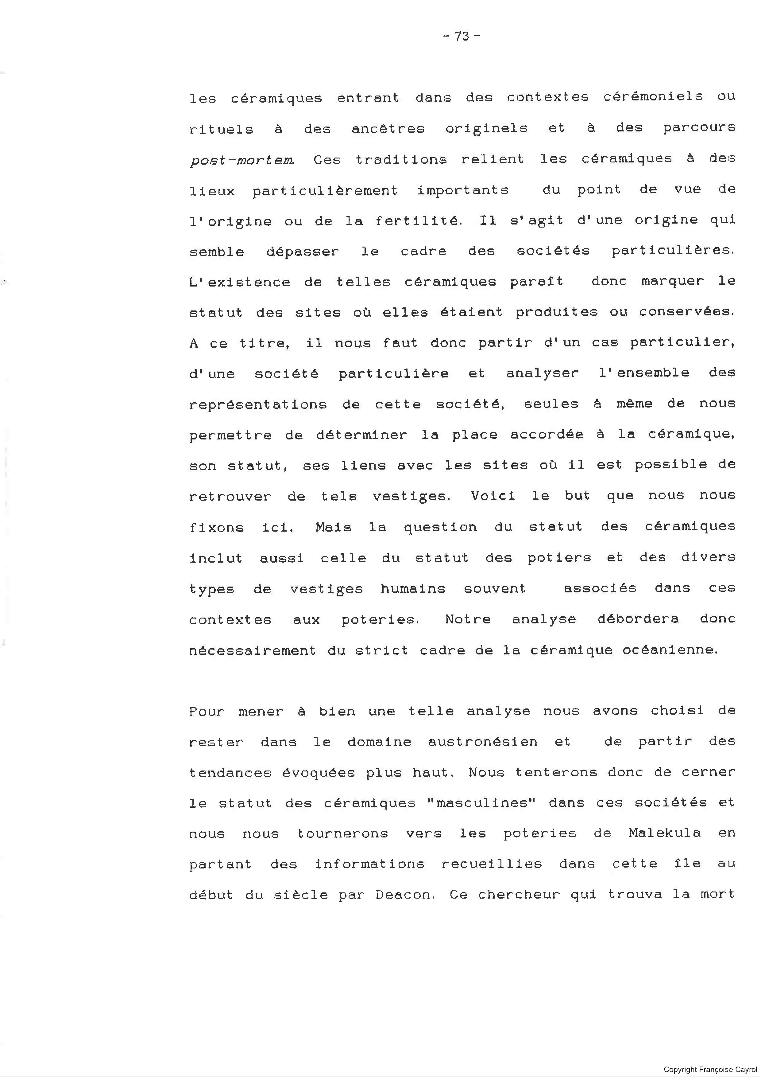 Françoise Cayrol. La céramique en Mélanésie du Sud, Fonction ou Statut. Volume 1 [Set(s) 1662]