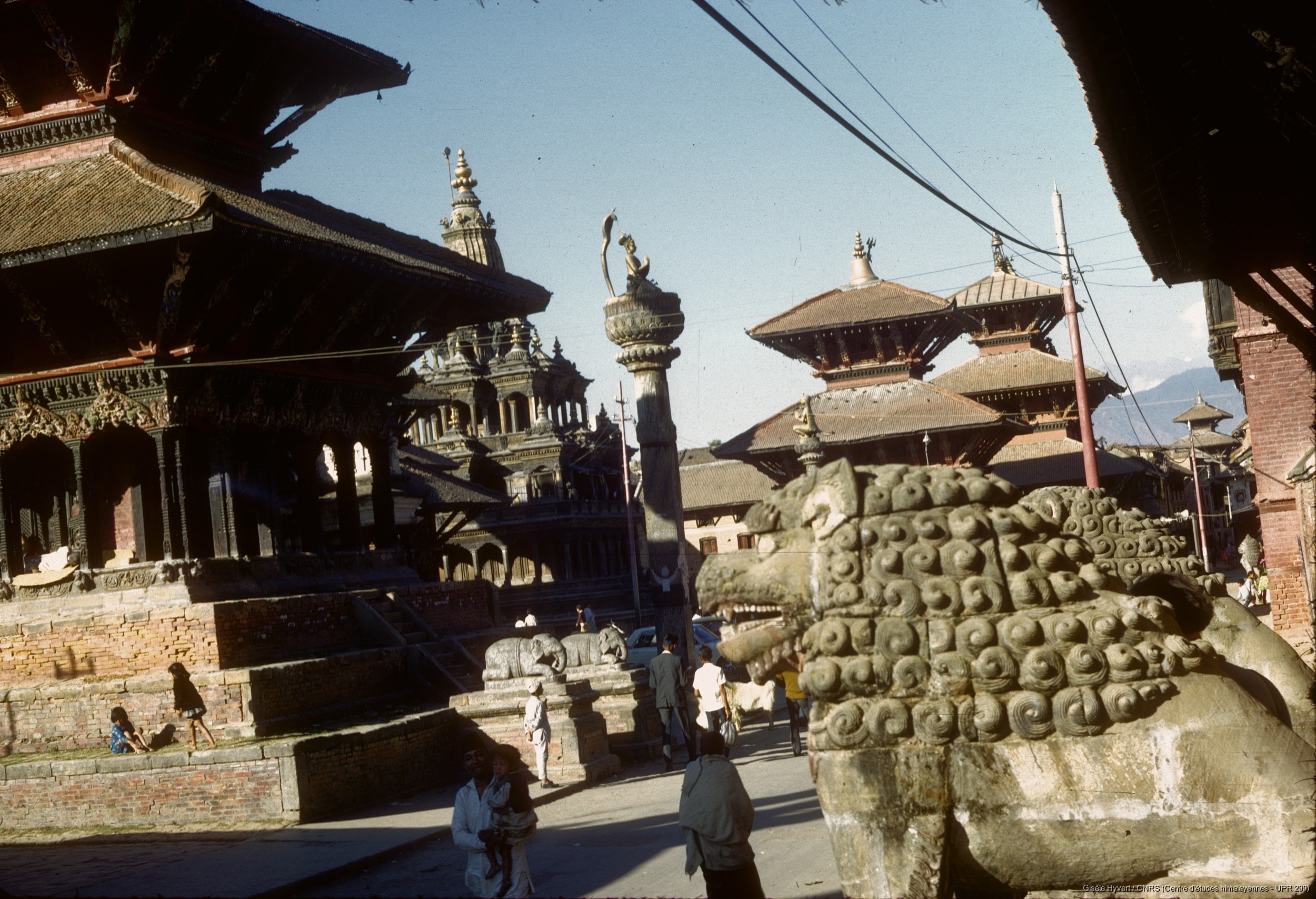 Hyvert, Gisèle 1971 (circa) [accessed: 2026/2/5]. "Temples de Hari Shankar et de Krishna (Krishna mandir) et statue en cuivre doré et repoussé du roi Yoganarendra Malla au sommet d'une colonne. " (Object Id: 188819). In