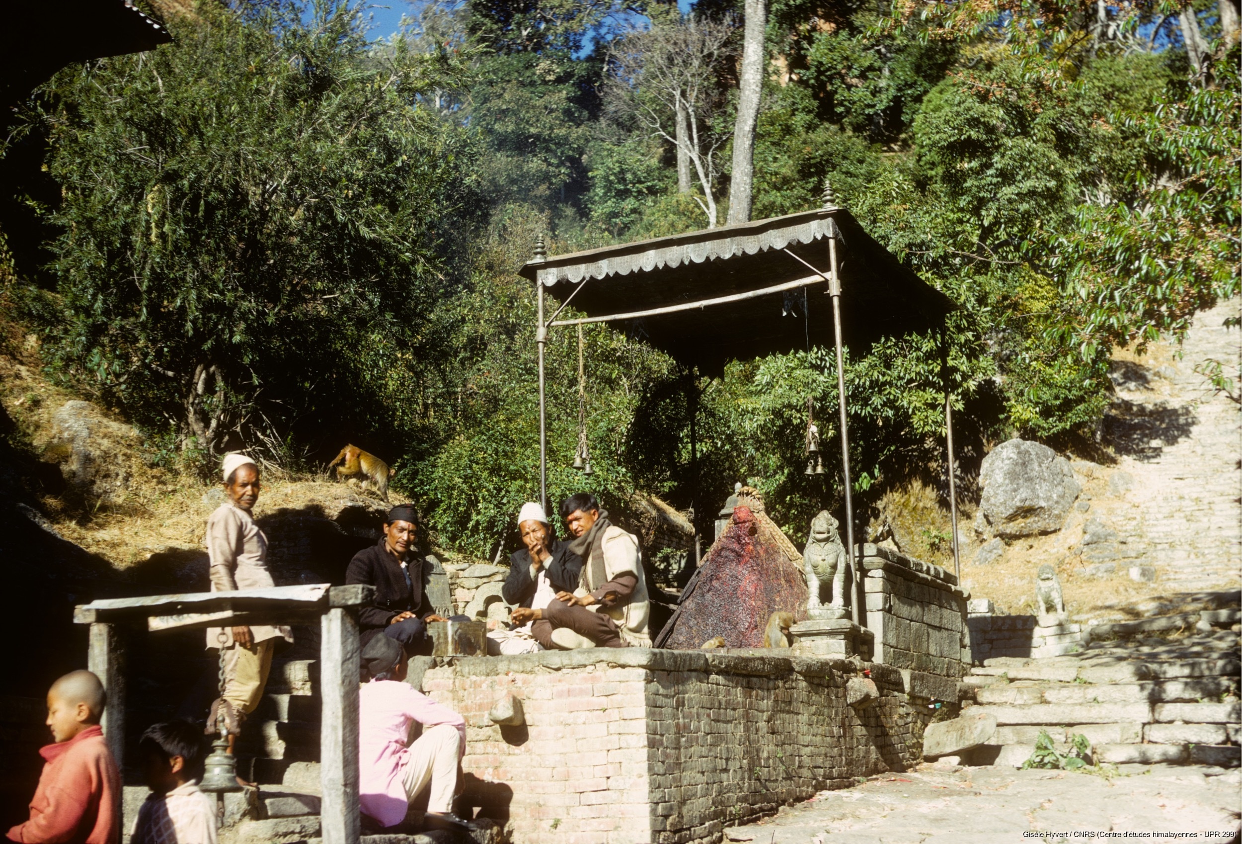 Hyvert, Gisèle 1971 (circa) [accessed: 2026/2/5]. "Petit temple ouvert avec une pierre triangulaire représentant le dieu Bhairav sur la montée vers le sanctuaire de Vajra Yogini. " (Object Id: 189003). In
