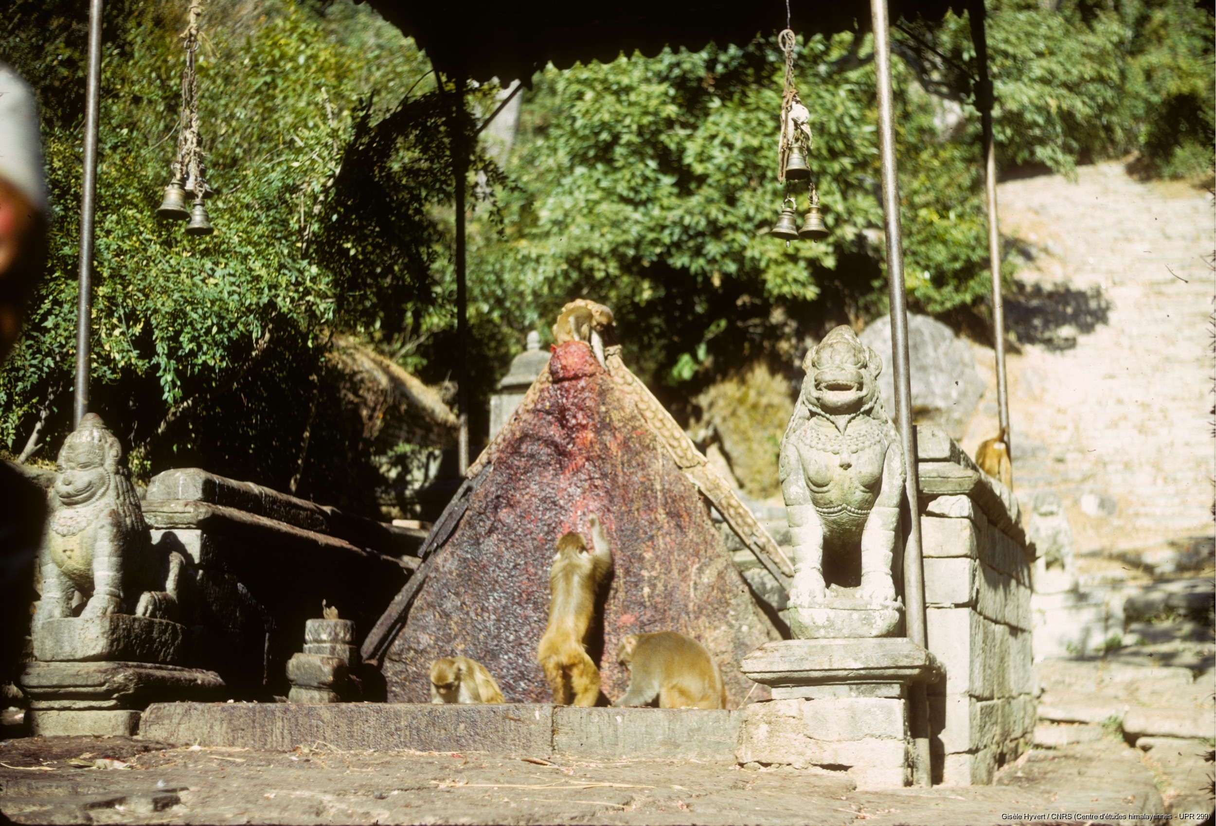 Hyvert, Gisèle 1971 (circa) [accessed: 2026/2/5]. "Pierre triangulaire représentant le dieu Bhairav sur la montée vers le sanctuaire de Vajra Yogini. " (Object Id: 189004). In