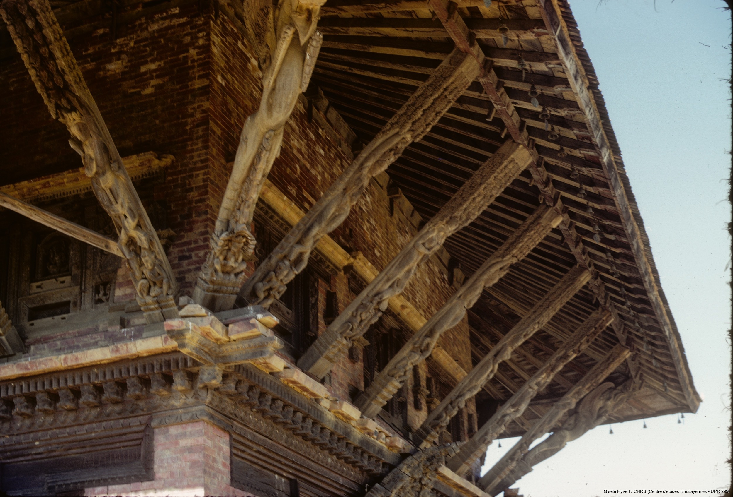 Vallée de Kathmandu c.1971 / Aisseliers en bois sculptés du temple d'Indreshwar Mahadev.   / Hyvert, Gisèle  / Panauti (Kavrepalanchok district), Népal