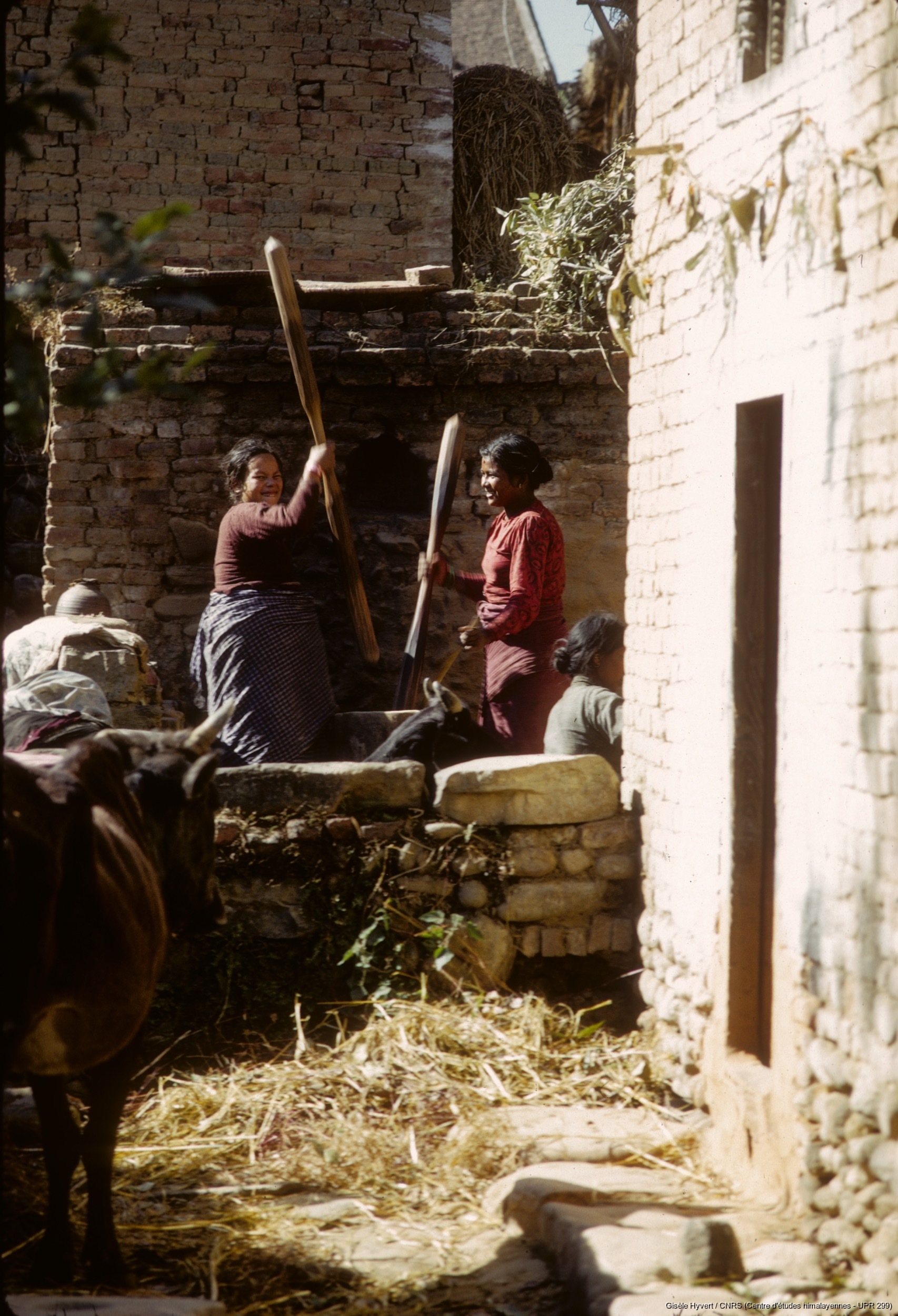 Vallée de Kathmandu c.1971 / Femmes en train de piler le grain.  / Hyvert, Gisèle  / Panauti (Kavrepalanchok district), Népal