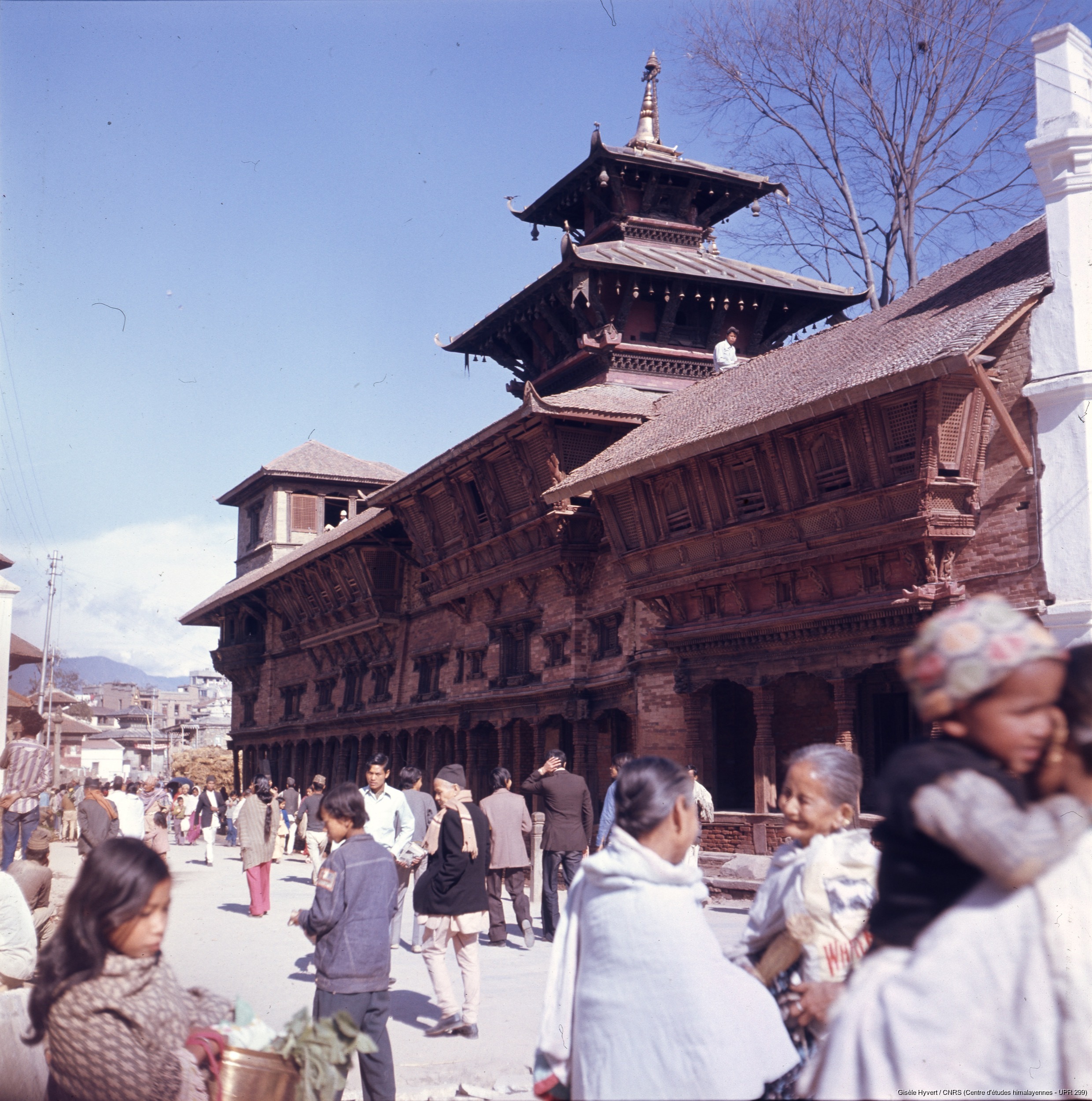Hyvert, Gisèle 1974 [accessed: 2026/2/5]. "Palais royal de Hanuman Dhoka. Façade ouest du Masan chok surmonté du temple de Bhagawati (appelé autrefois Mahipatindra Narayan). " (Object Id: 189146). In