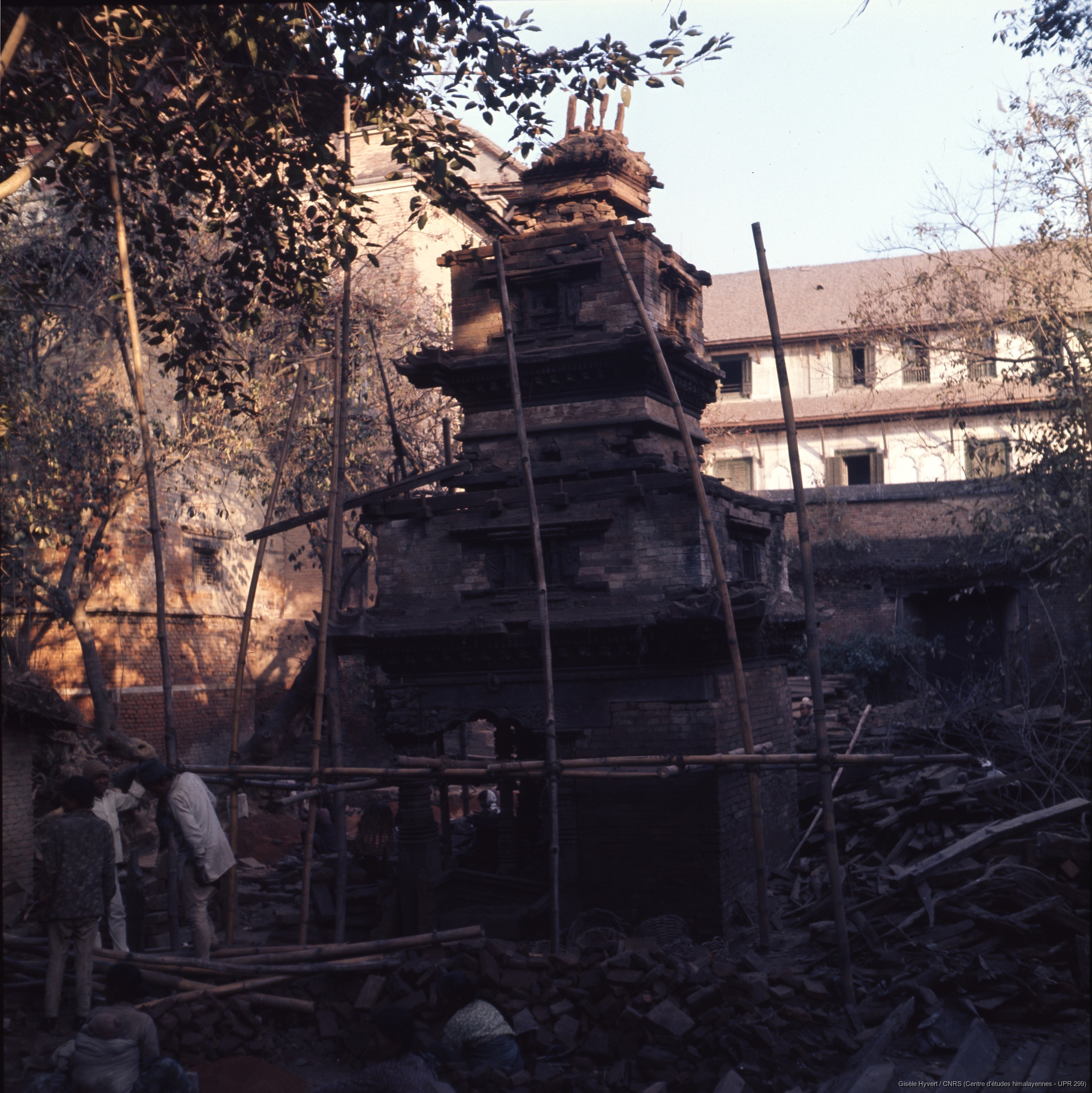 Vallée de Kathmandu c.1972-1975 / Palais royal de Hanuman Dhoka. Restauration du temple de Nasadyo (Nrityeshwar) dans la cour de Masan chok.  / Hyvert, Gisèle  / Kathmandu, Durbar square (Kathmandu district), Népal
