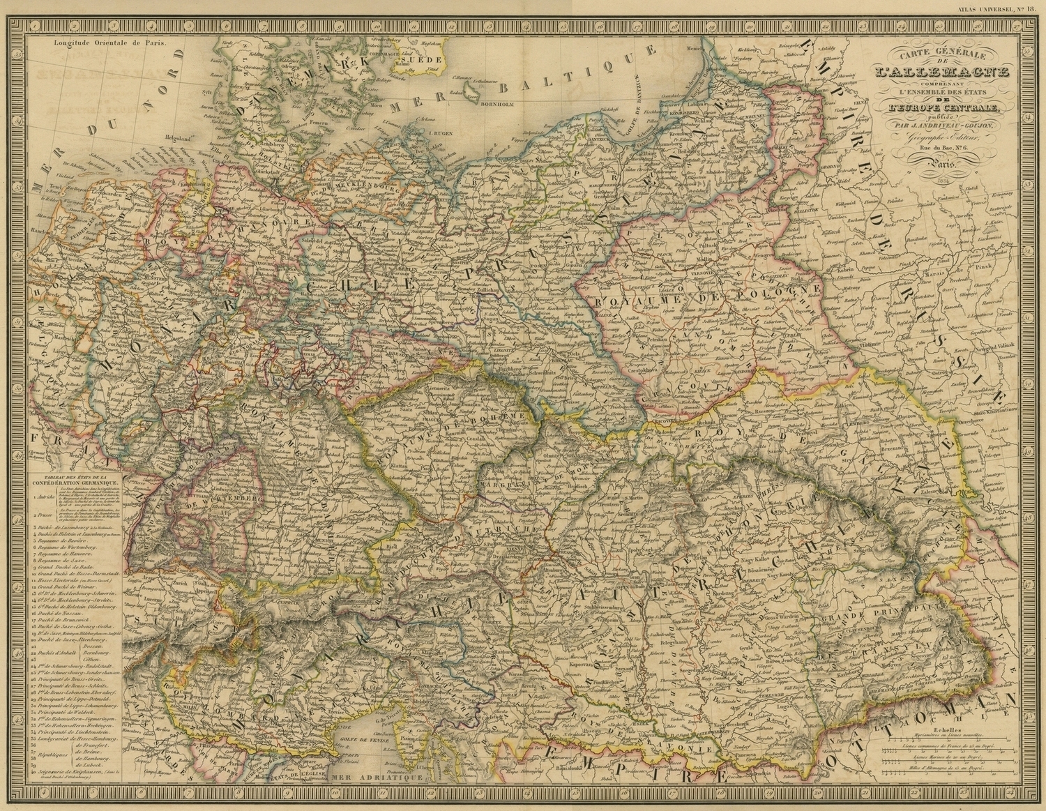 Quote this document Divers, 1834 [accessed: 2026/2/5]. "Carte générale de l'Allemagne comprenant l'ensemble des Etats de l'Europe Centrale" (Object Id: 19687). In General historical maps. ODSAS: https://www.odsas.net/object/19687.