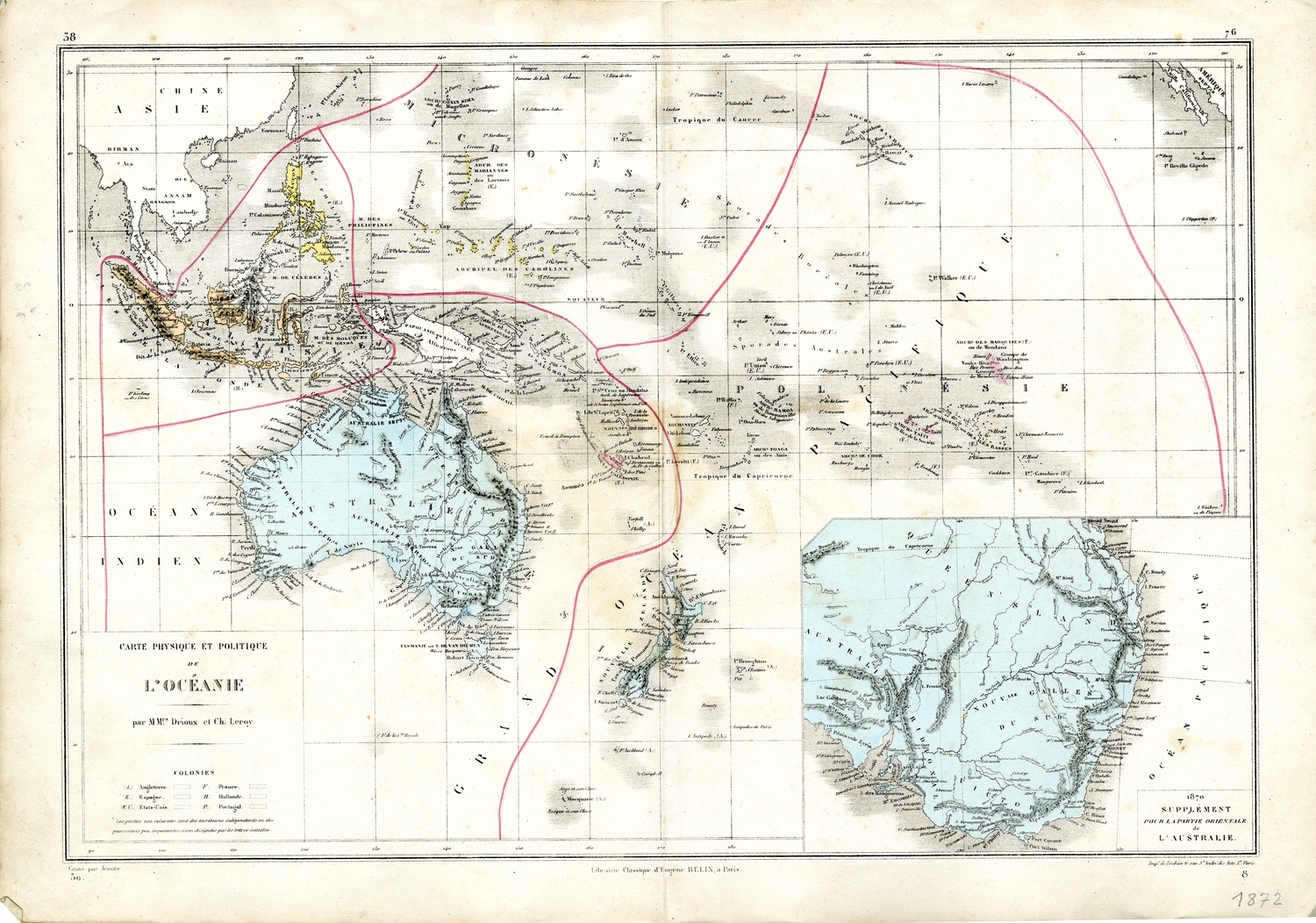Quote this document Divers, 1872 [accessed: 2026/2/5]. "Carte physique et politique de l'Océanie" (Object Id: 19706). In Maps of Oceania. ODSAS: https://www.odsas.net/object/19706.