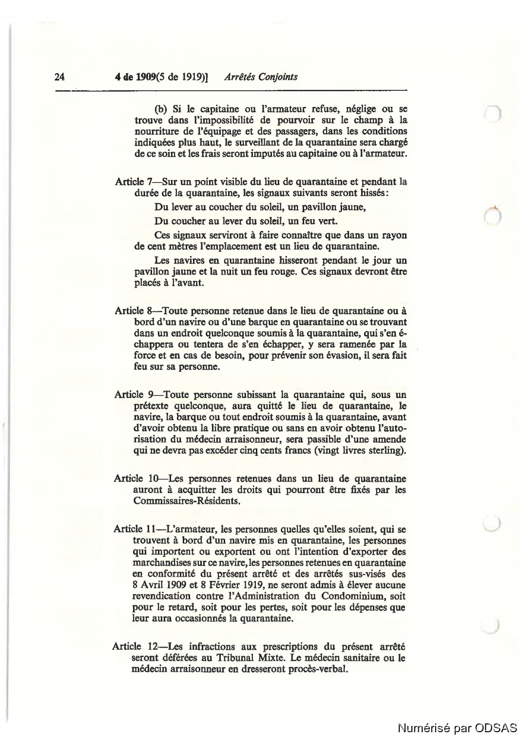Article 9—Toute personne subissant la quarantaine qui, sous un