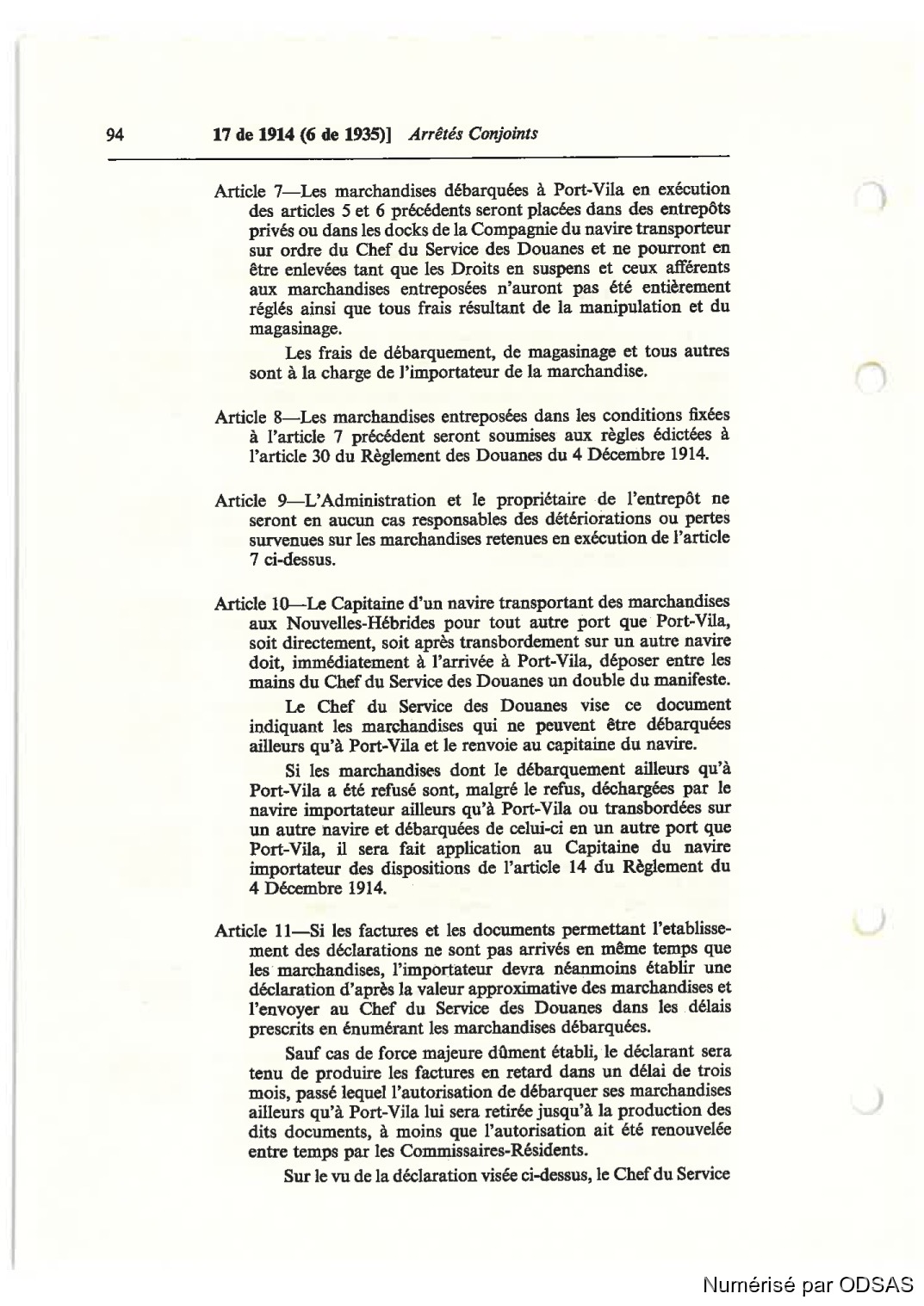 Article 7—Les marchandises débarquées à Port-Vila en exécution
