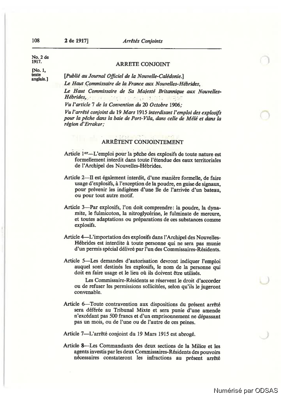 1 de 1917] Arrêtés Conjoints