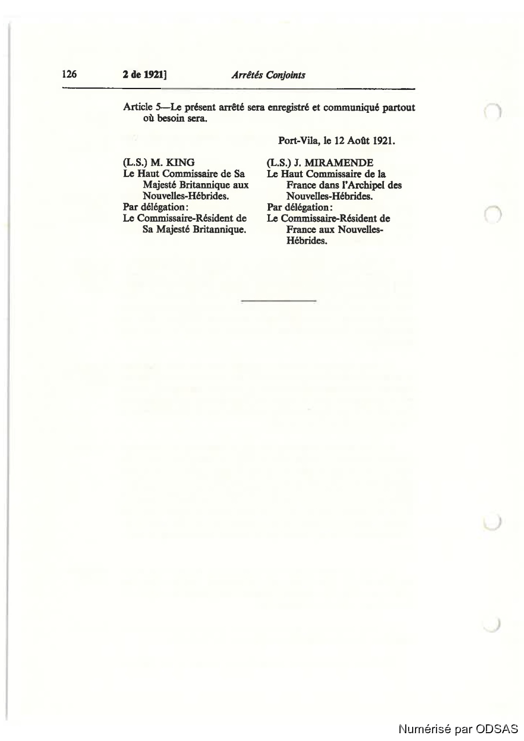 (L.S.) M. KING (L.S.) J. MIRAMENDE
