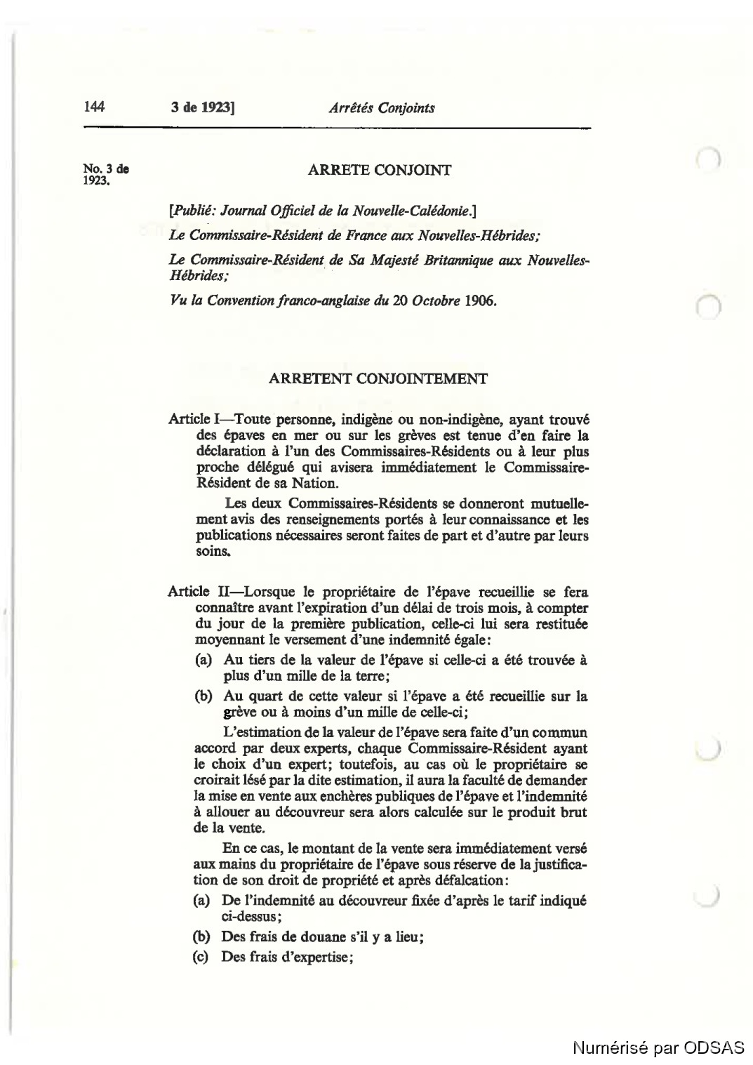 Article II—Lorsque le propriétaire de l’épave recueillie se fers.