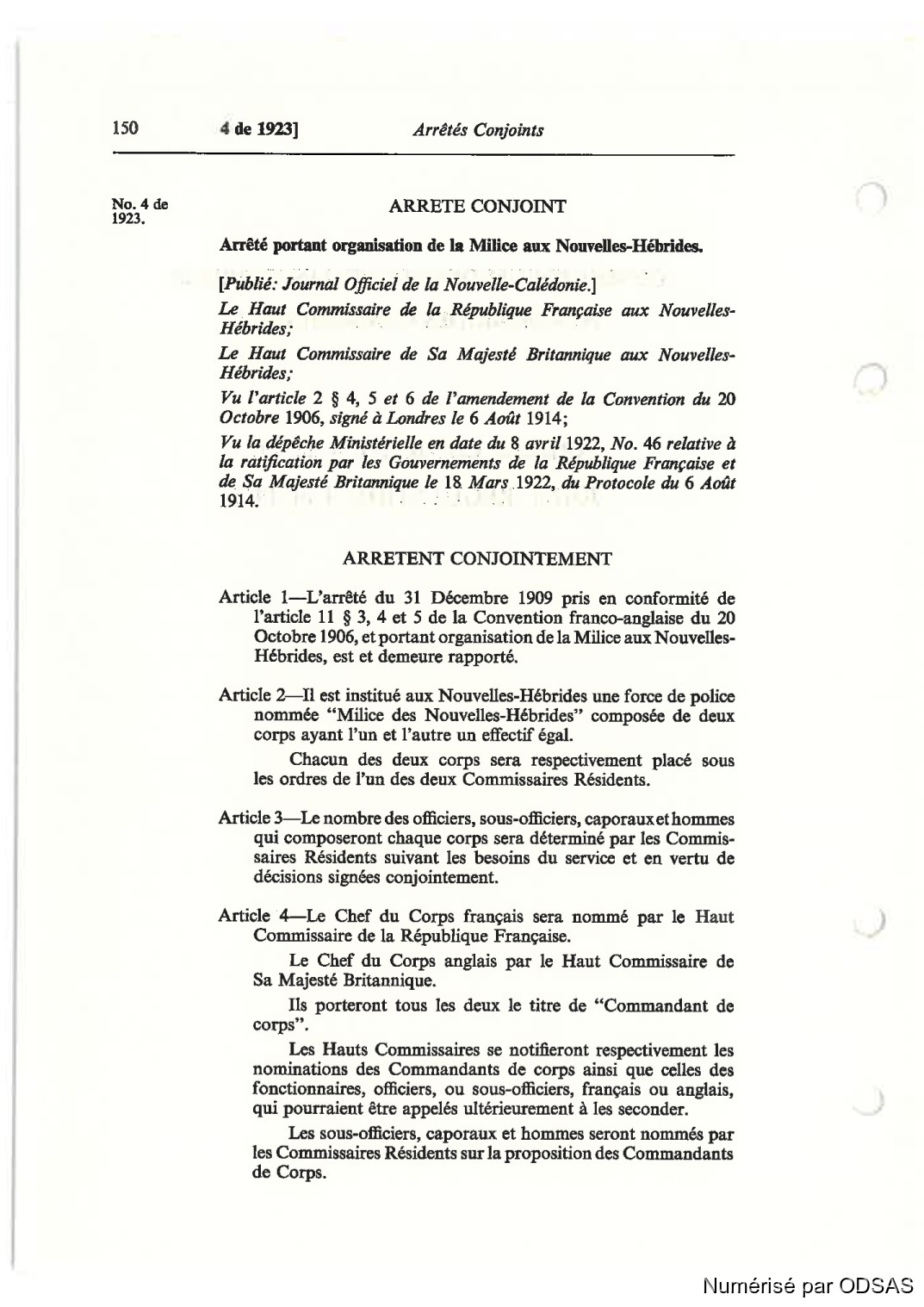 Article Zÿll est institué aux Nouvelles-Hébrides une force de police