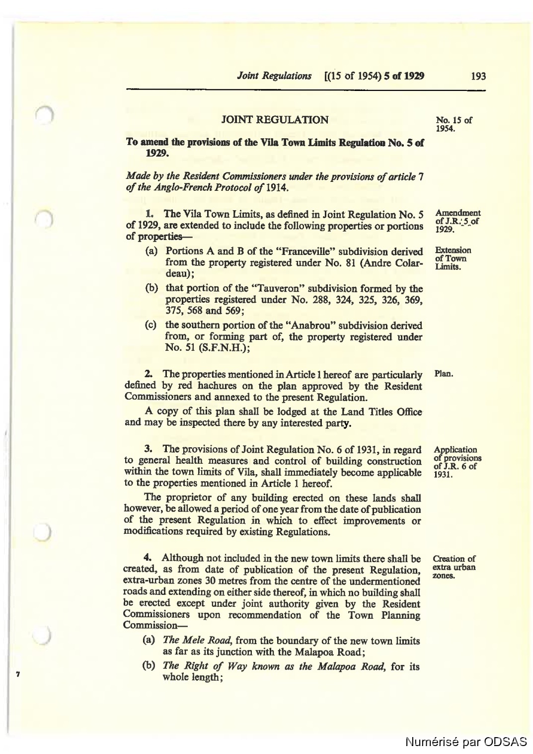 Quote this document Commissaires, Résidents 1973 [accessed: 2026/1/14]. "Règlementation Conjointe des Nouvelles-Hébrides, Tome 1" (Object Id: 197290). In Règlementation Conjointe des Nouvelles-Hébrides, Tome 1. ODSAS: https://www.odsas.net/object/197290.