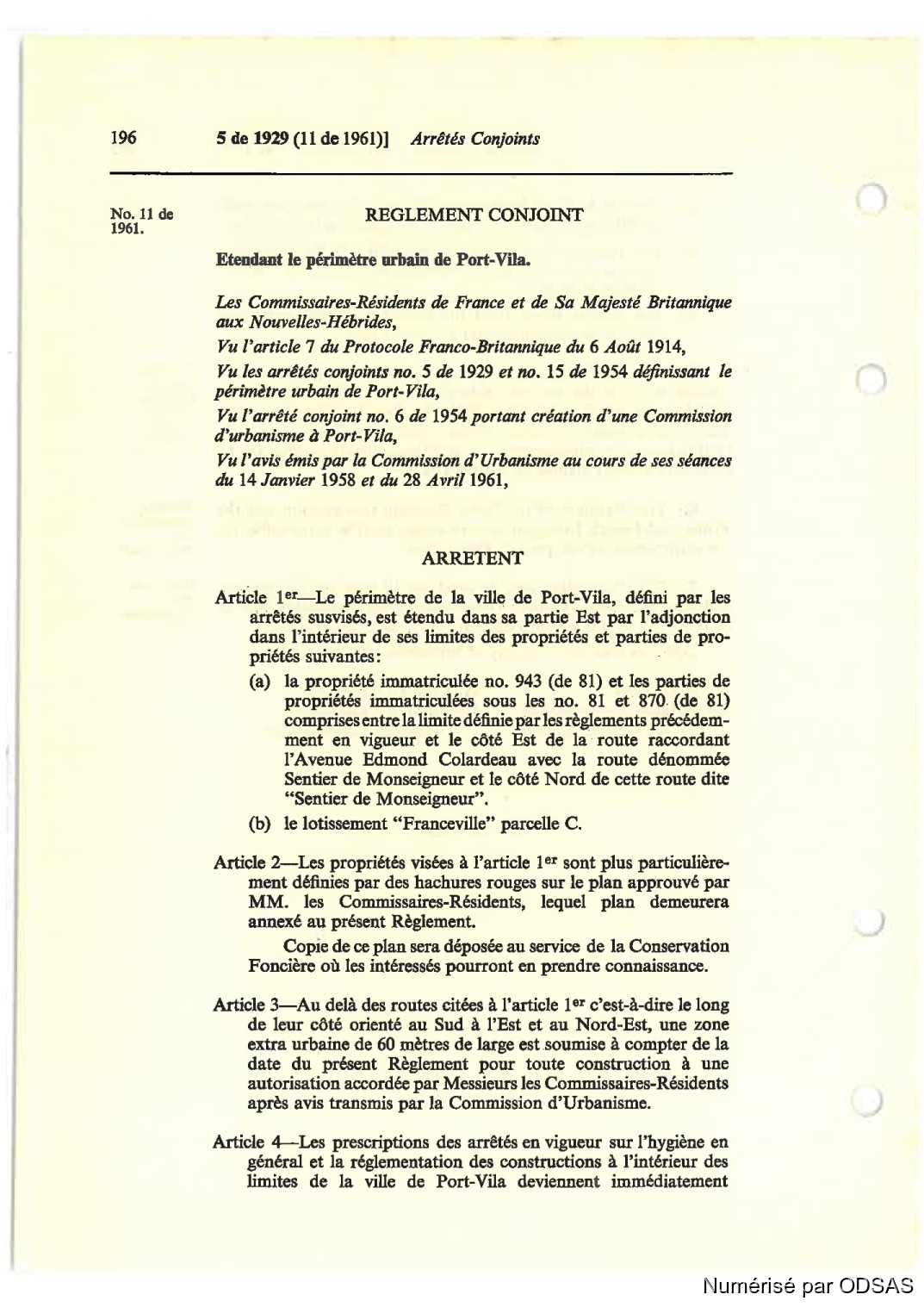 Article l"—Le périmètre de in vüle de Port-Vila, défini par les