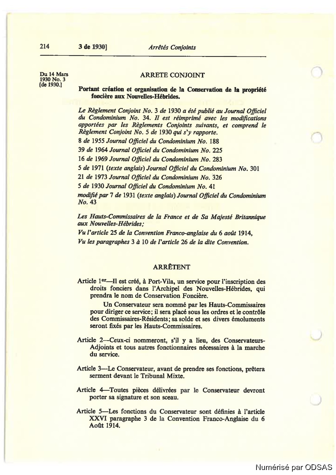 modifié par 7 de 1931 (texte anquLv) Journal Ofiîciel du Condominium