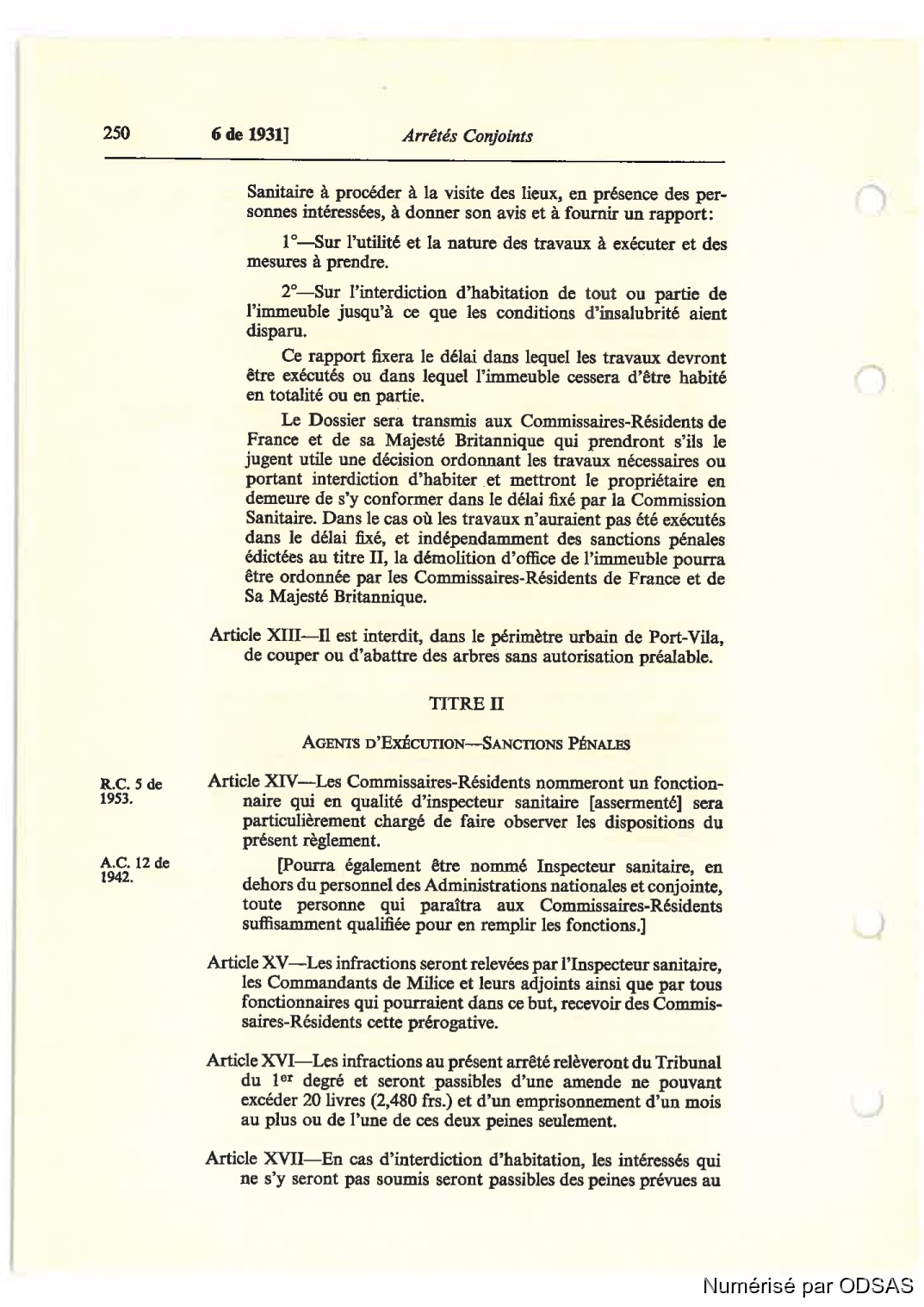 Article XIl'I—Il est interdit, dans le périmètre urbain de Port-Vila,