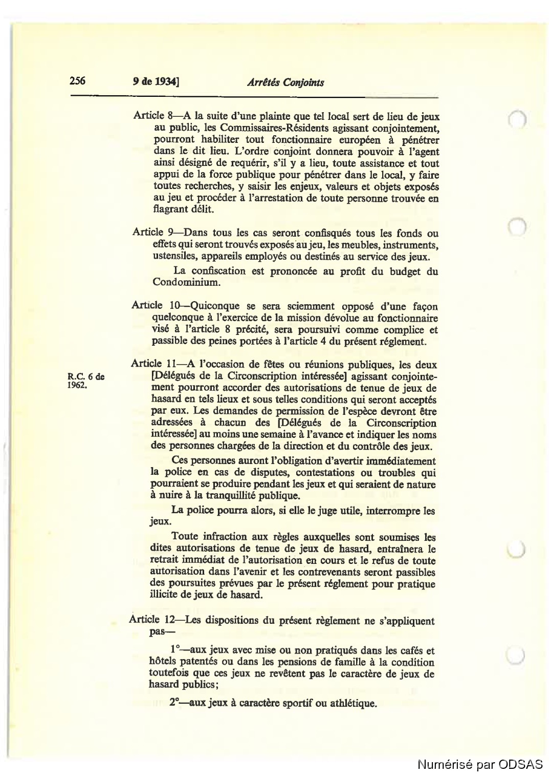 1962: ment pourront accorder des autorisations de tenue de jeux de
