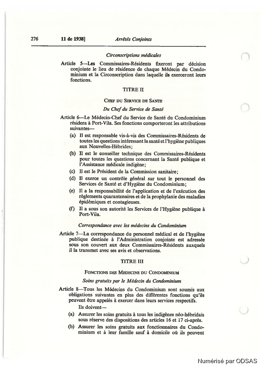 Article 6—l..e Médecin-Chef du Service de Santé du Condominium