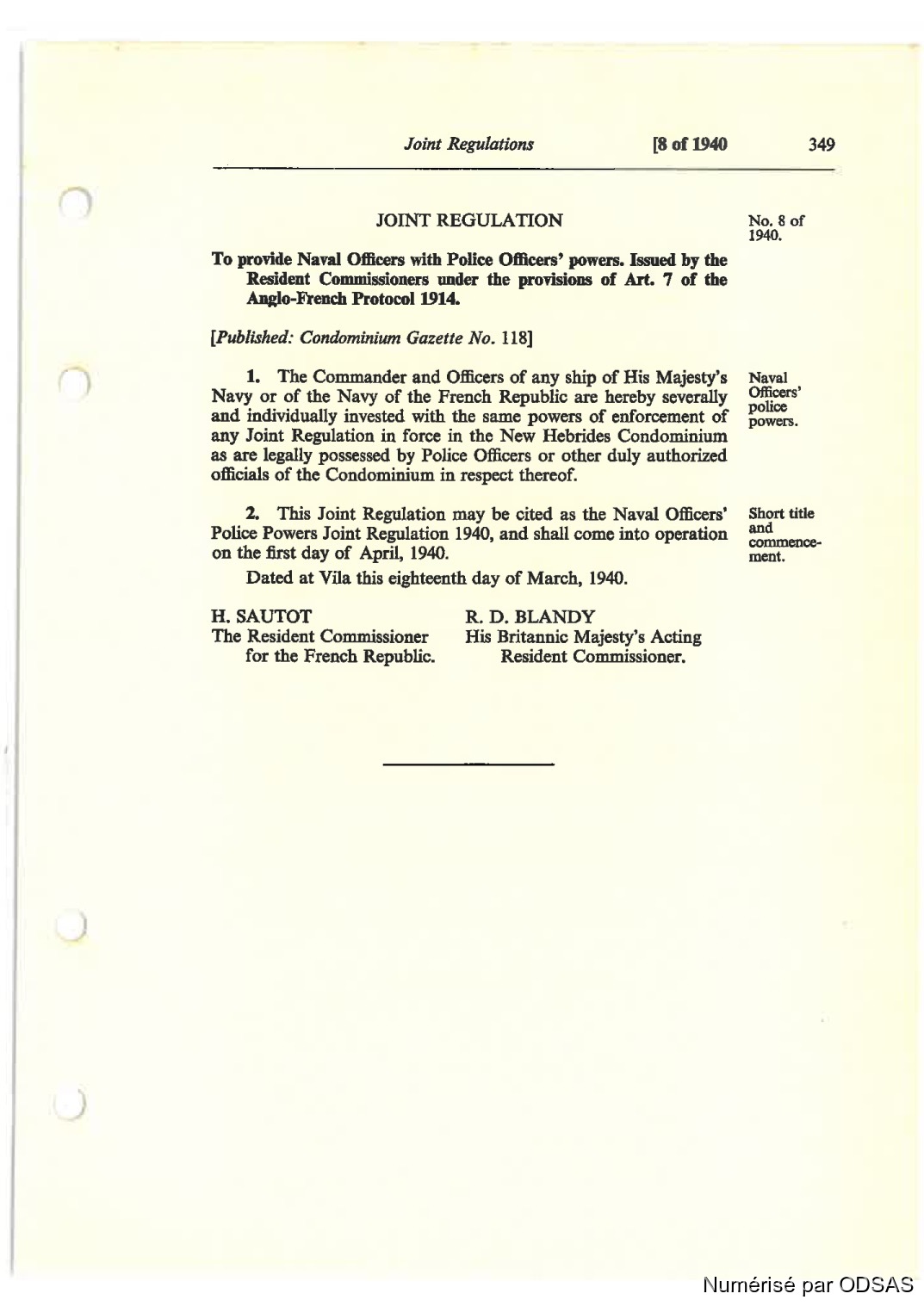 Dated at Vila this cightcenth day of Match, 1940.