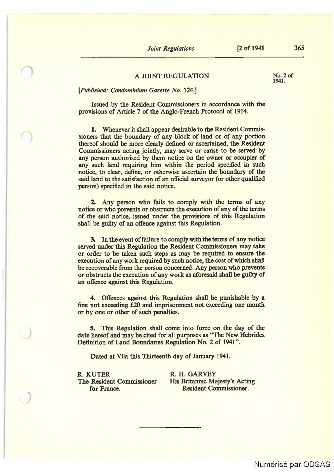 Definilion cf Land Boundariec Regulation No. 2 cf 1941”.