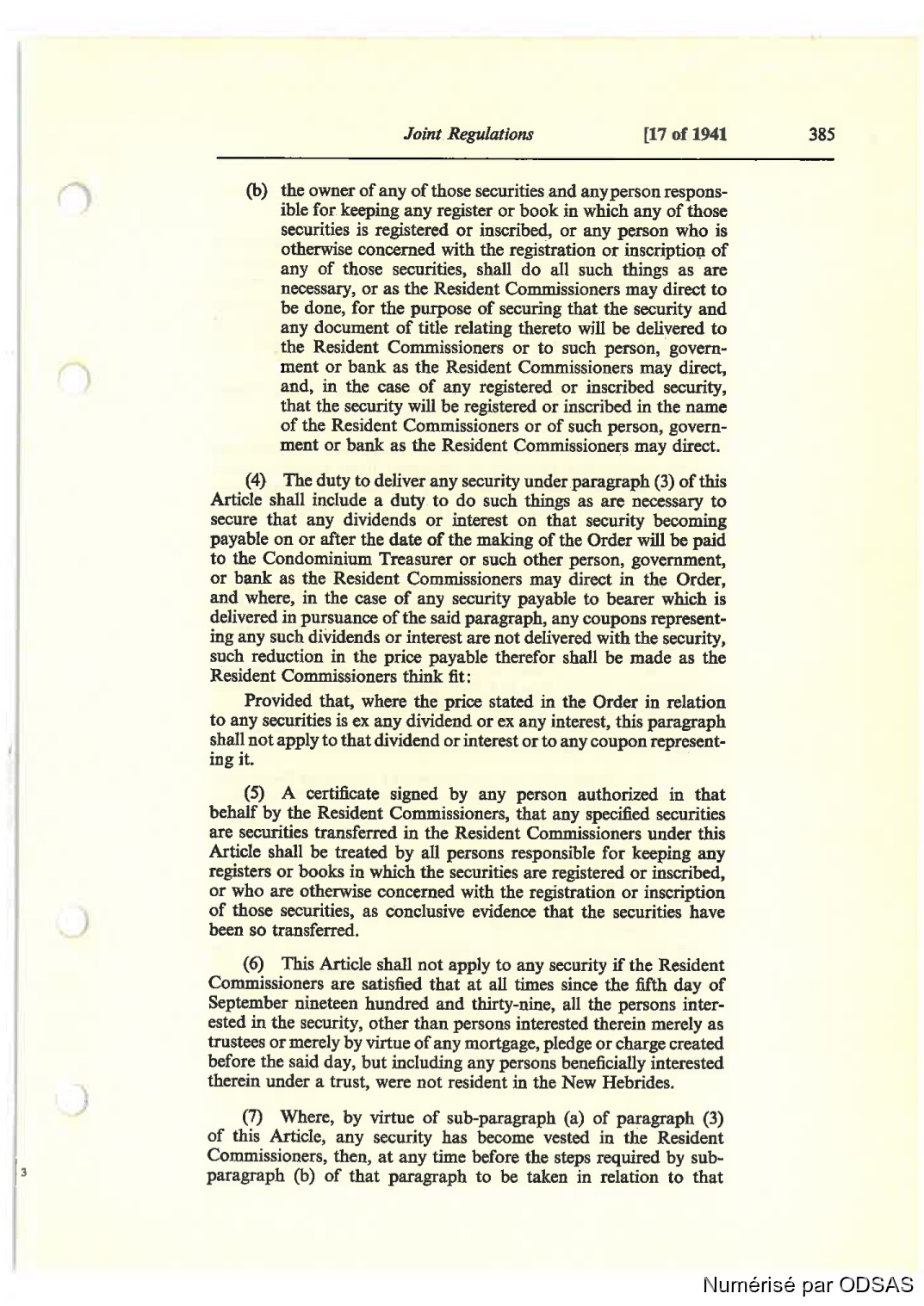 are securities Ll'ansferred in the Resident Commissioners under Lhis